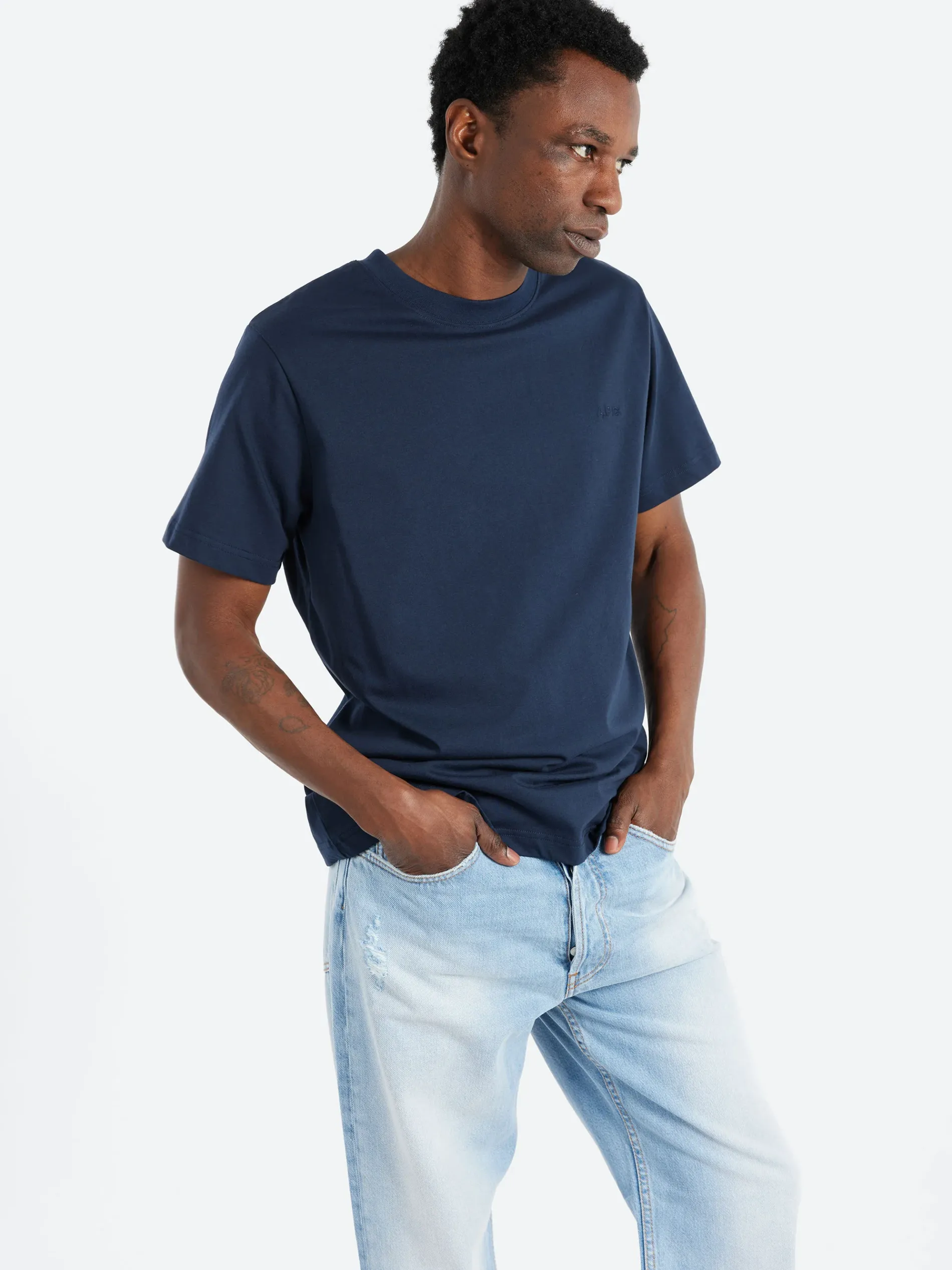 - Tone-on-tone A.P.C. embroidered over the heart