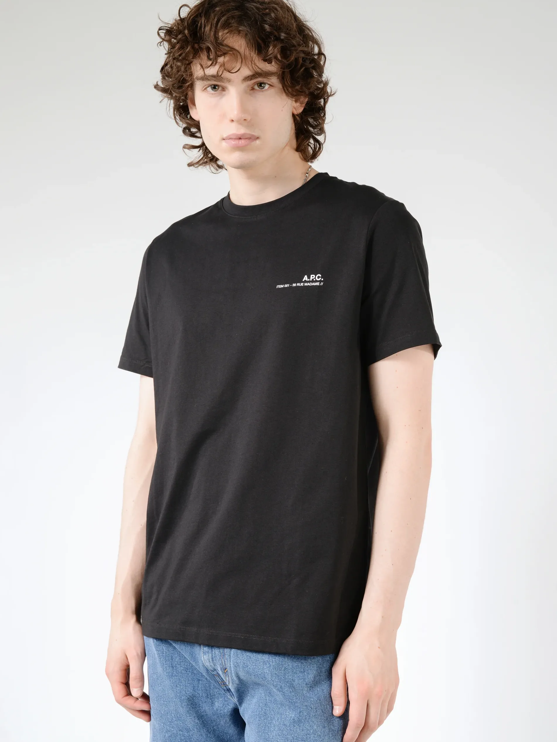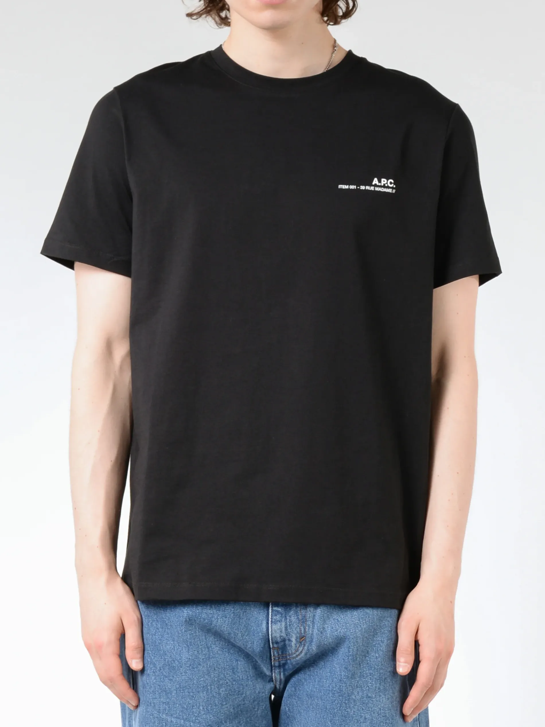 - ‘A.P.C. ITEM 0001 – 39 RUE MADAME’ logo on chest