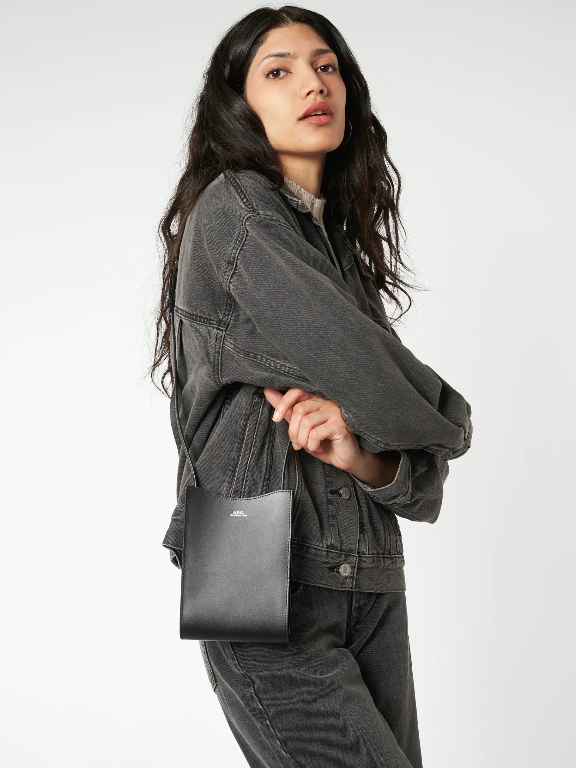 A.P.C. neck pouch in smooth black leather.