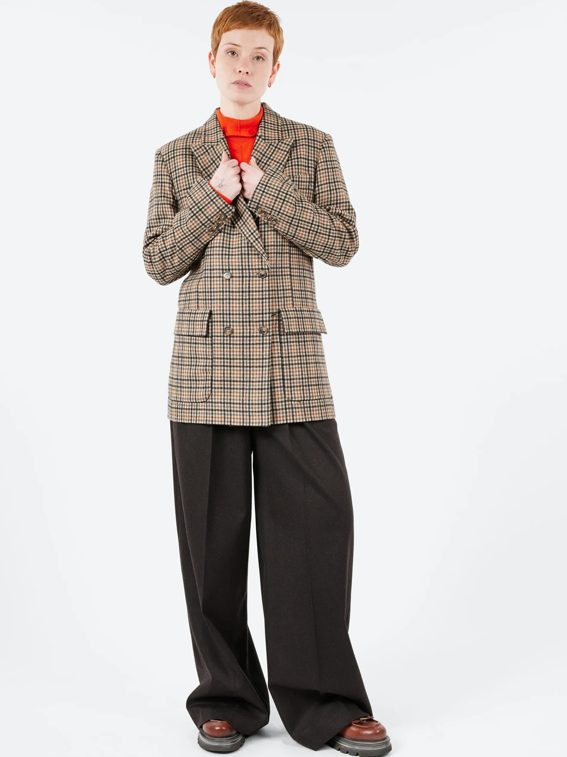 Loose-fit double-breasted jacket in recycled wool.