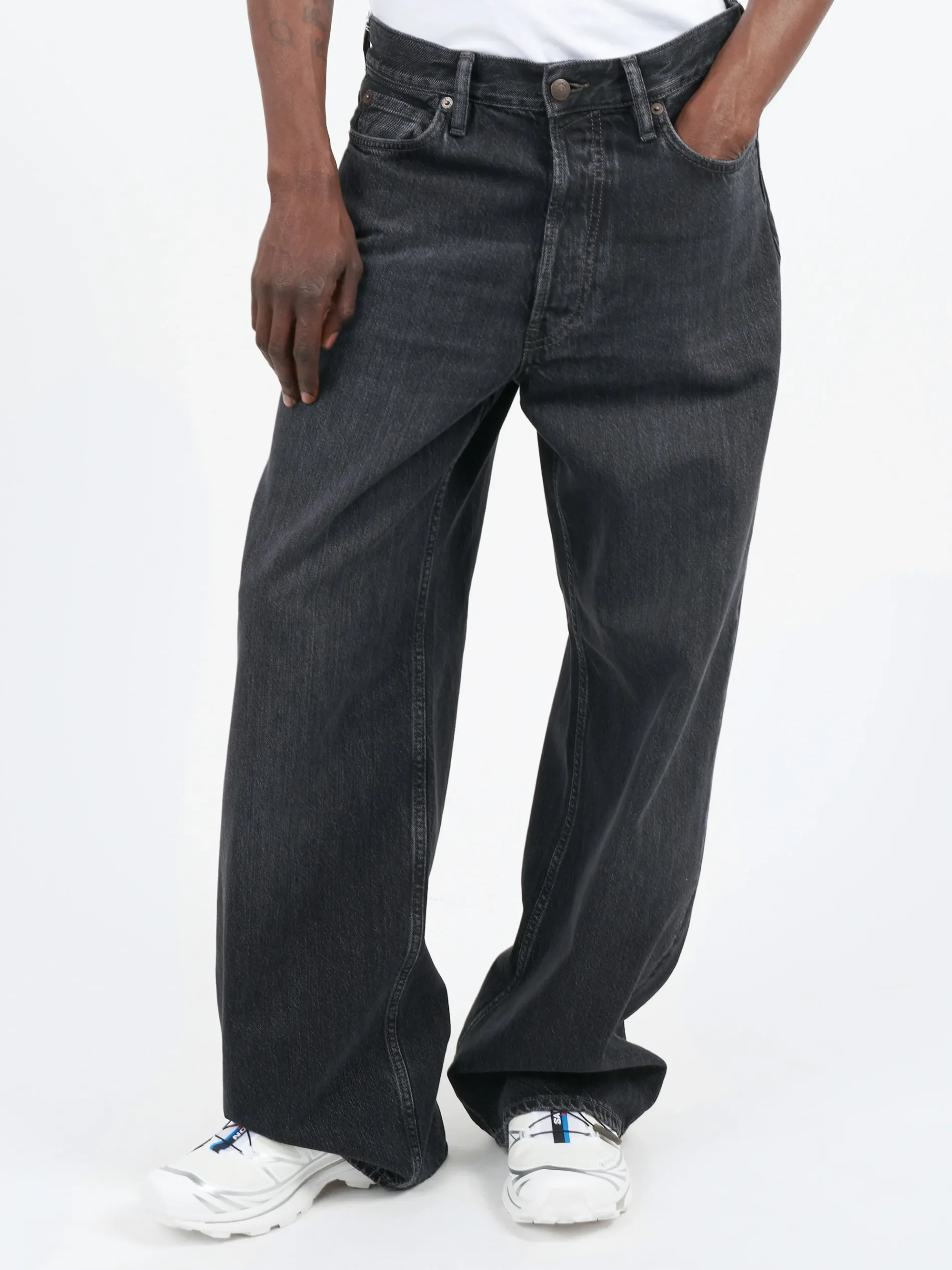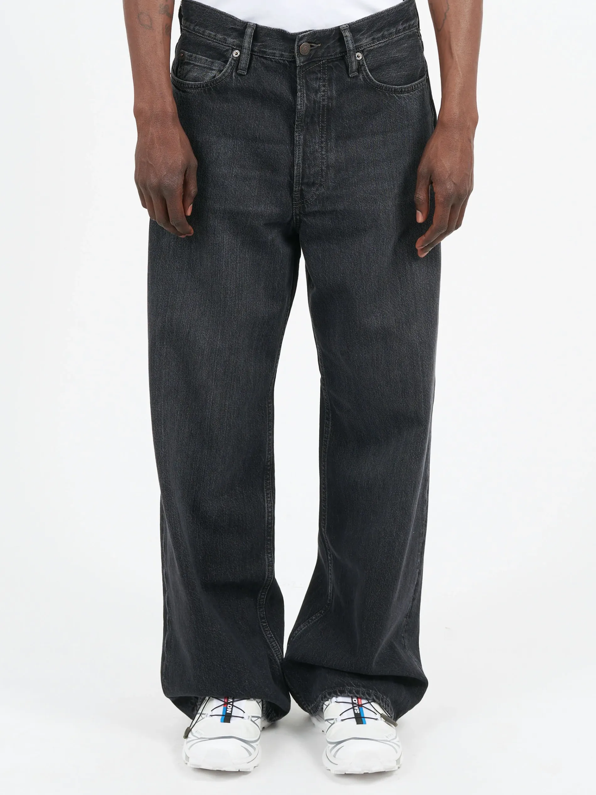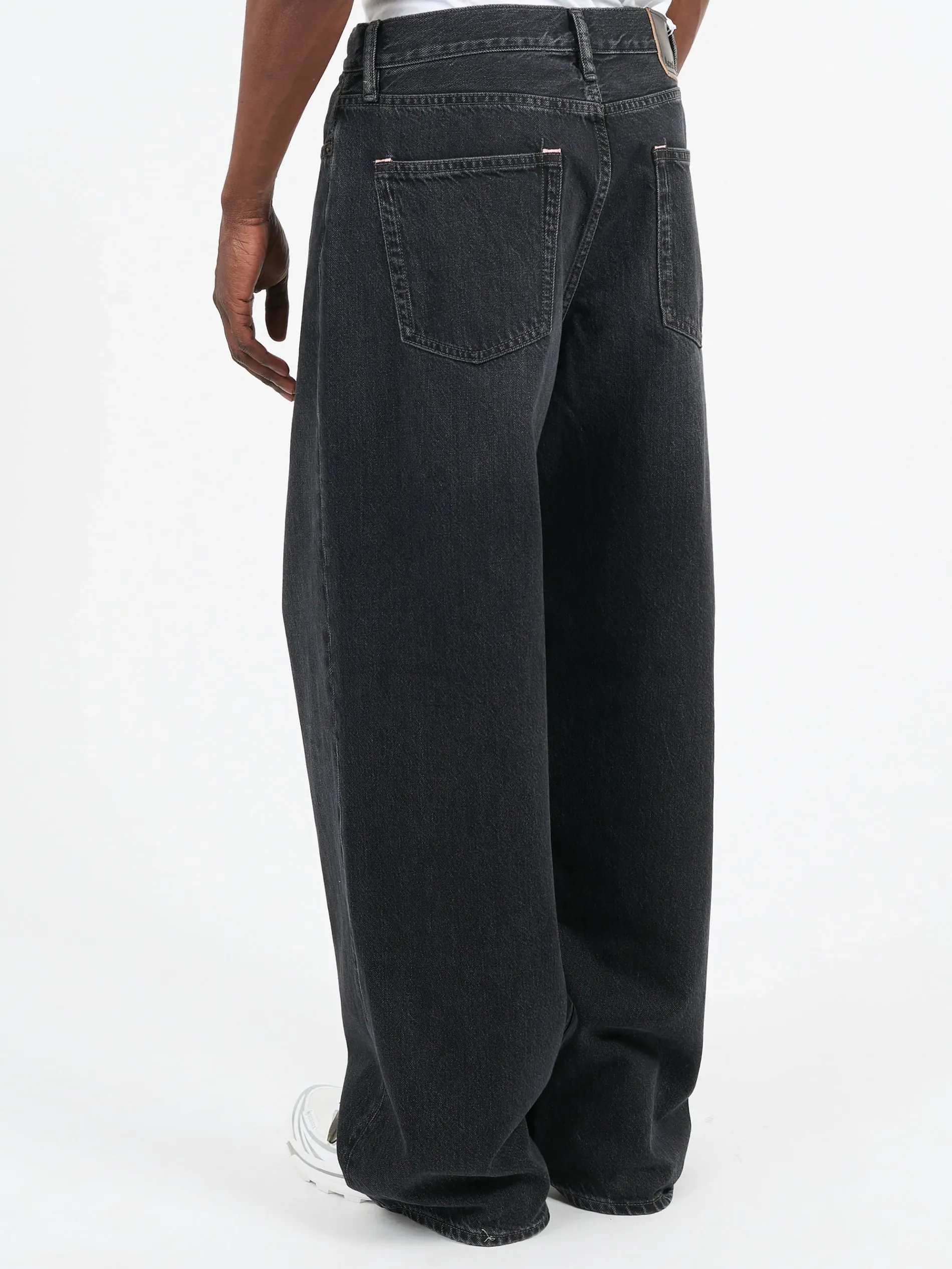 1981M jeans are cut to a loose fit with a low waist, wide leg and long length. Crafted from non stretch denim in black wash.
