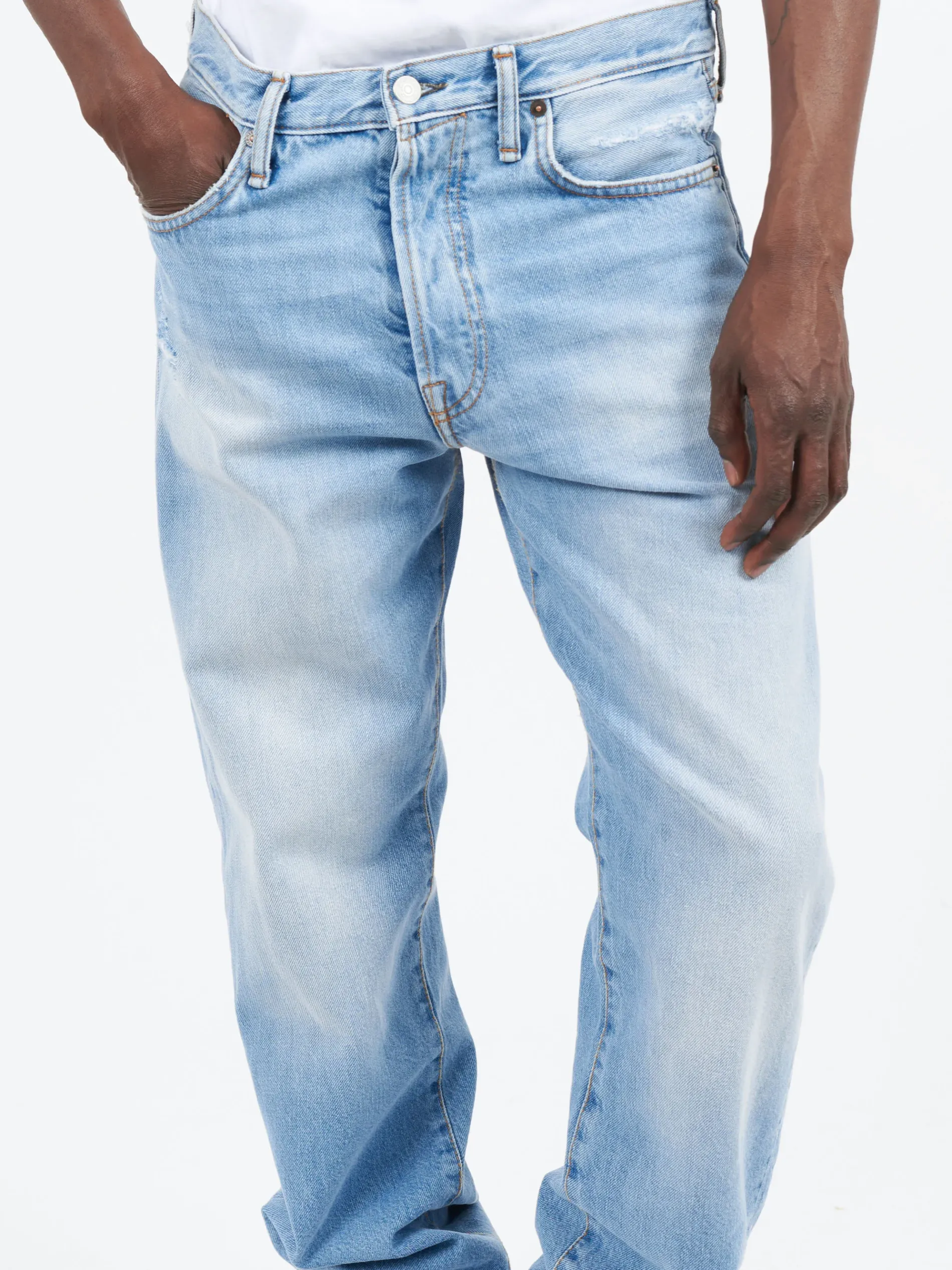 1996 jeans are cut to a regular fit with mid waist, straight leg and regular length. Crafted from non stretch denim in a light blue wash.