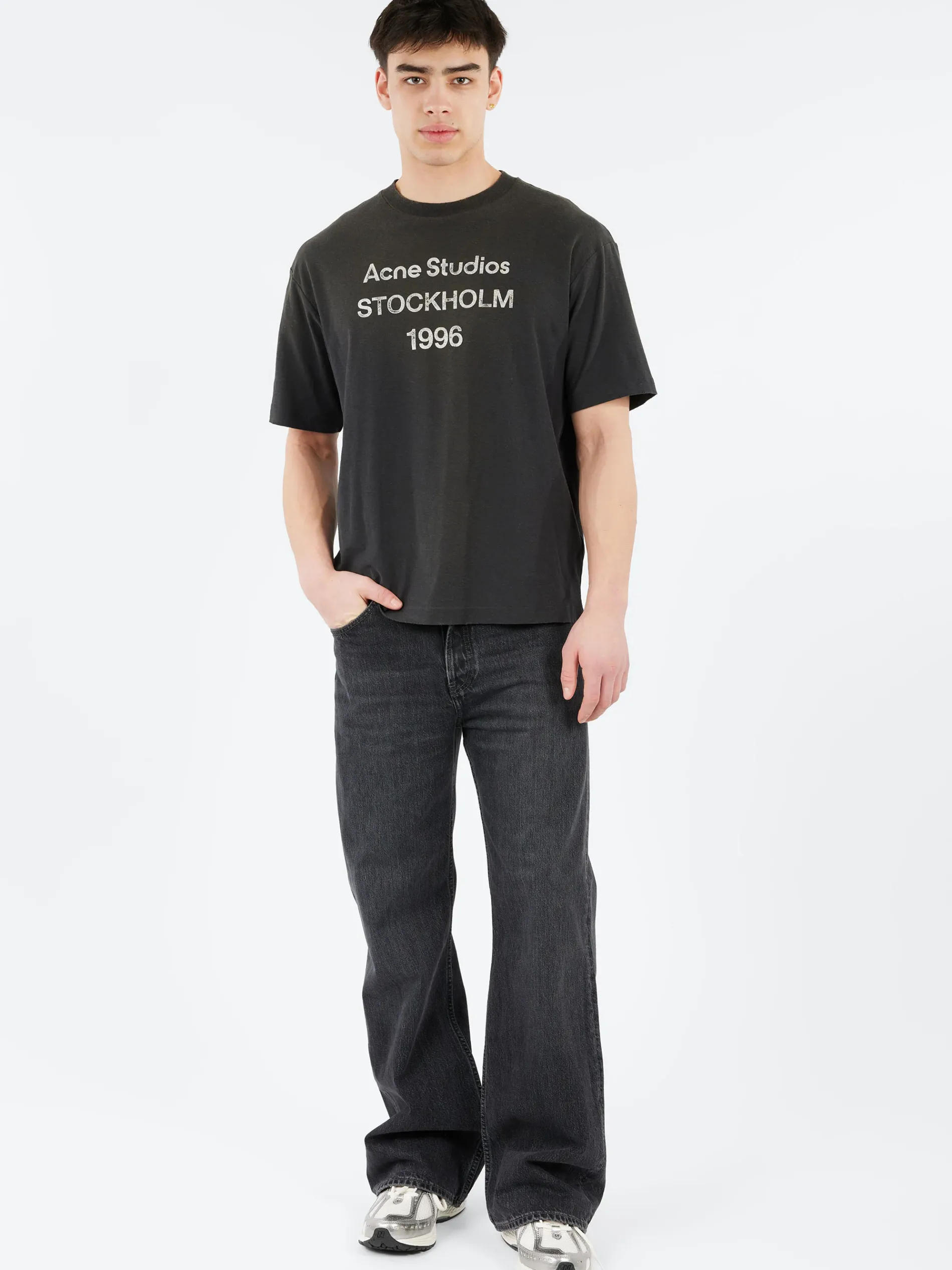 2021 jeans are cut to a loose fit with mid-waist, wide leg and long length. Made from rigid denim in deep black overdye with a washed finish.