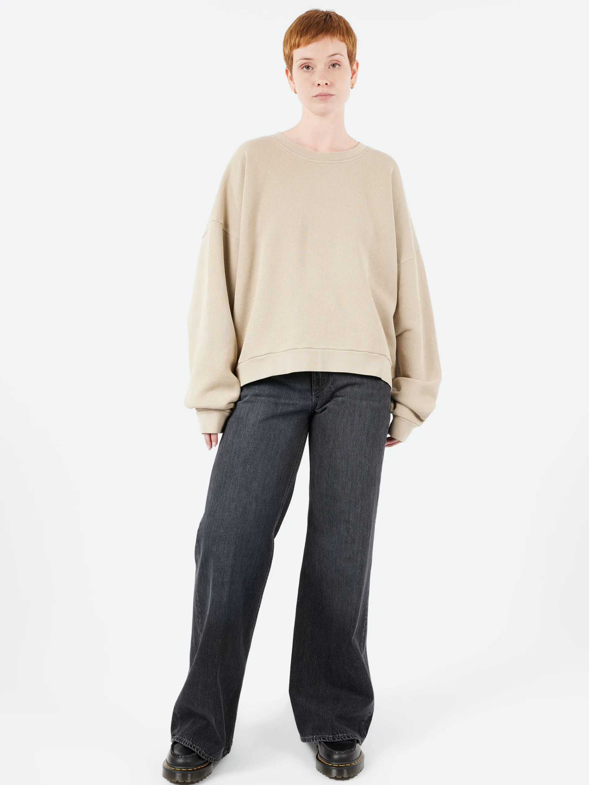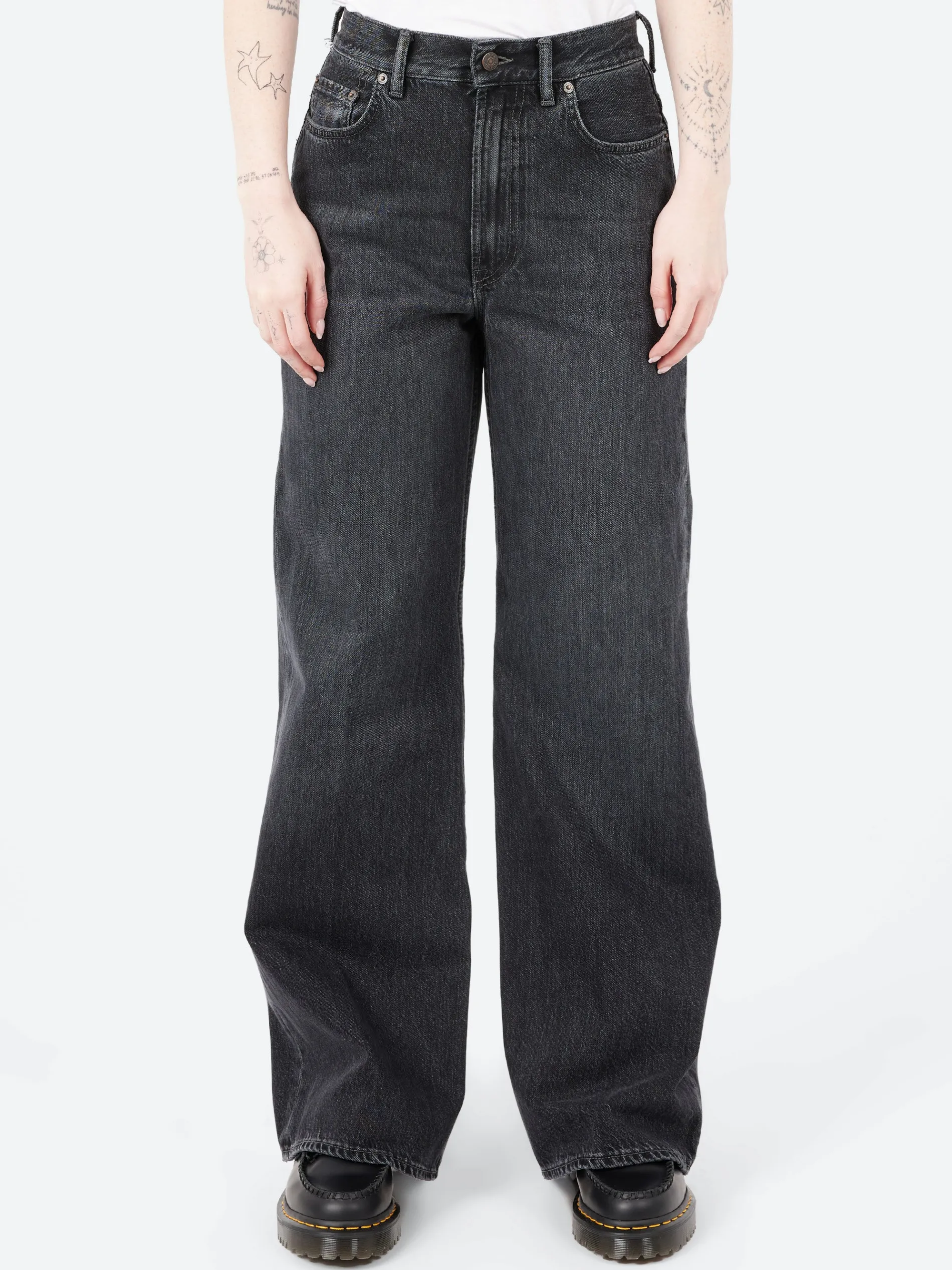 2022 jeans are cut to a relaxed fit with a high waist, wide leg and long length. Made from rigid denim in deep black overdye with a washed finish.