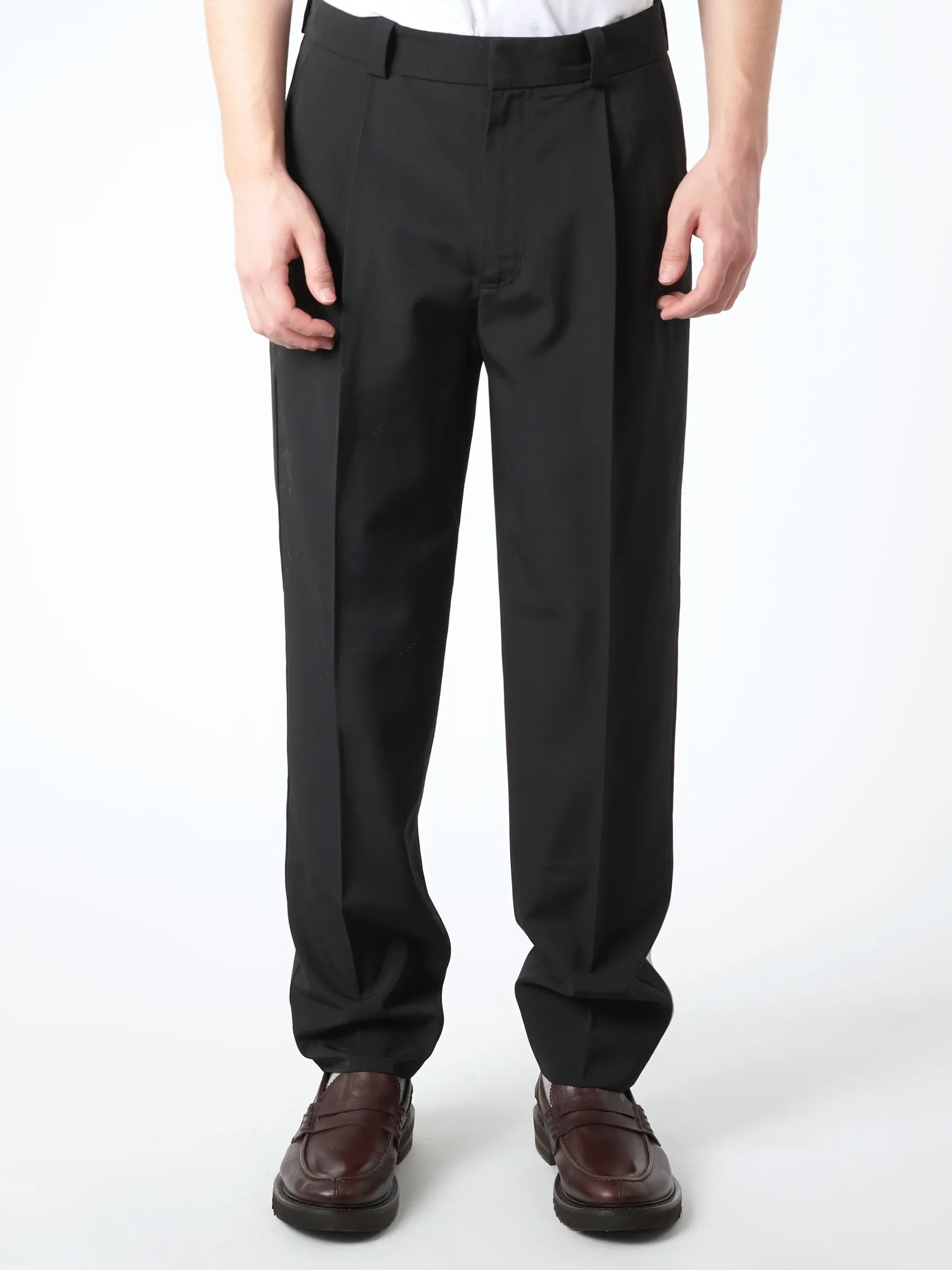 Tailored suit trousers are cut to a regular fit and long length. Crafted from a wool blend, detailed with front and back leg creases.