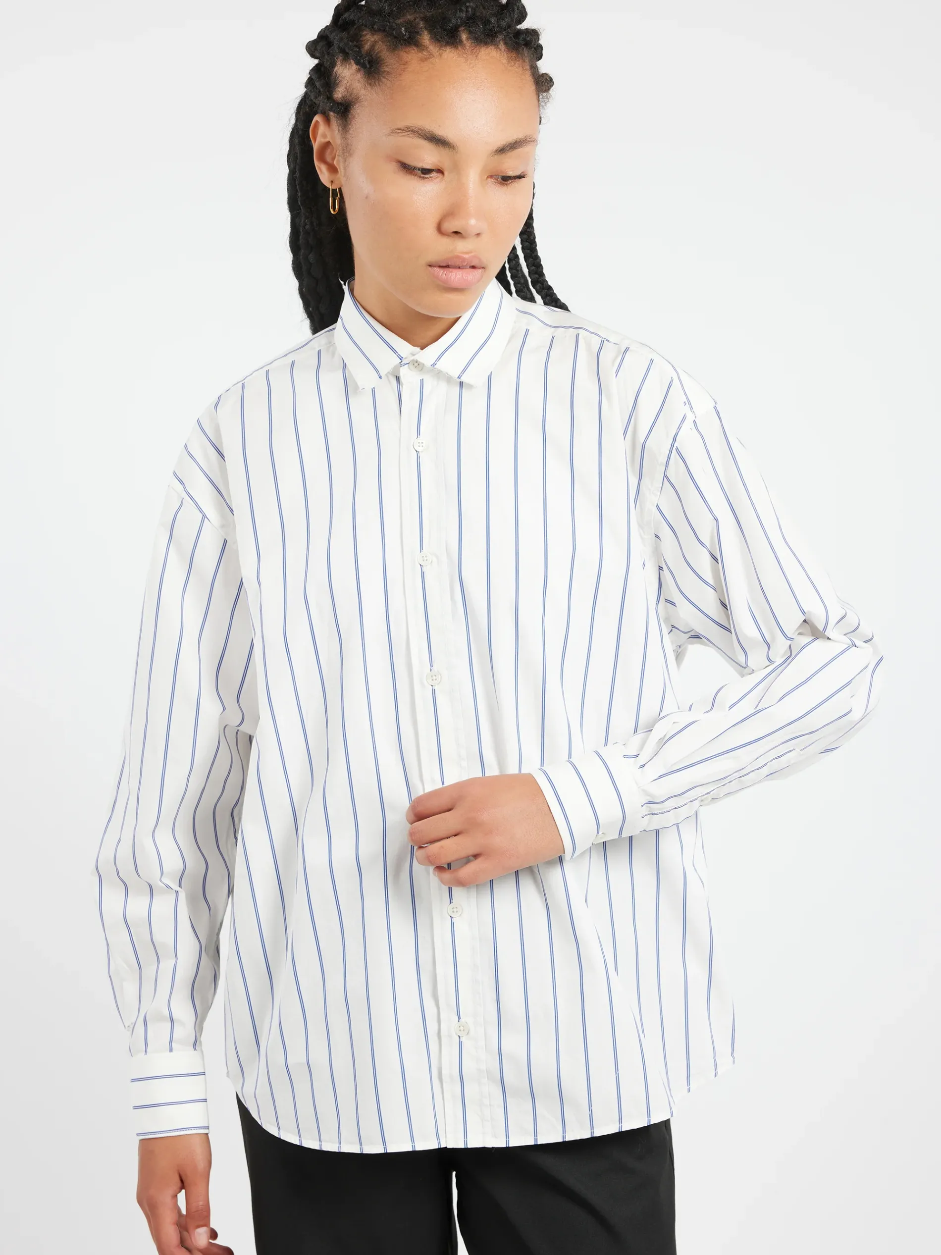 An oversized “dress shirt” featuring a cut away collar.