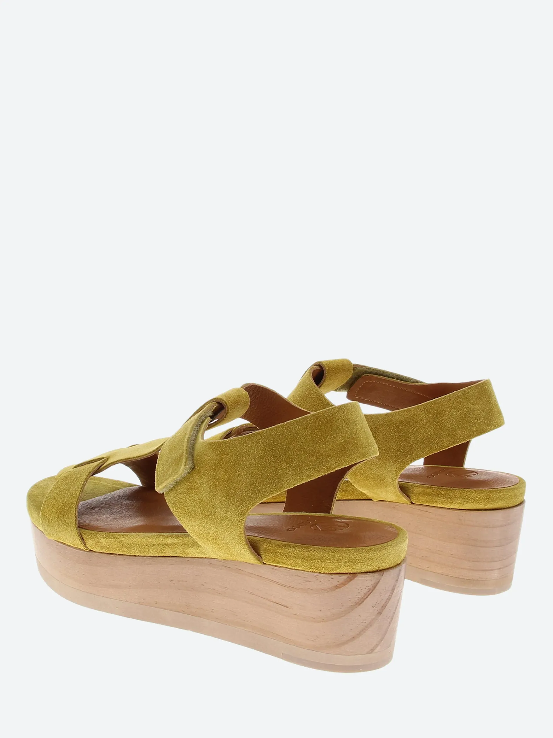 The Ally clog is a raw edge T-strap reminiscent of a summer classic perched on a fresh, contemporary wood platform with a shock-absorbing sole.