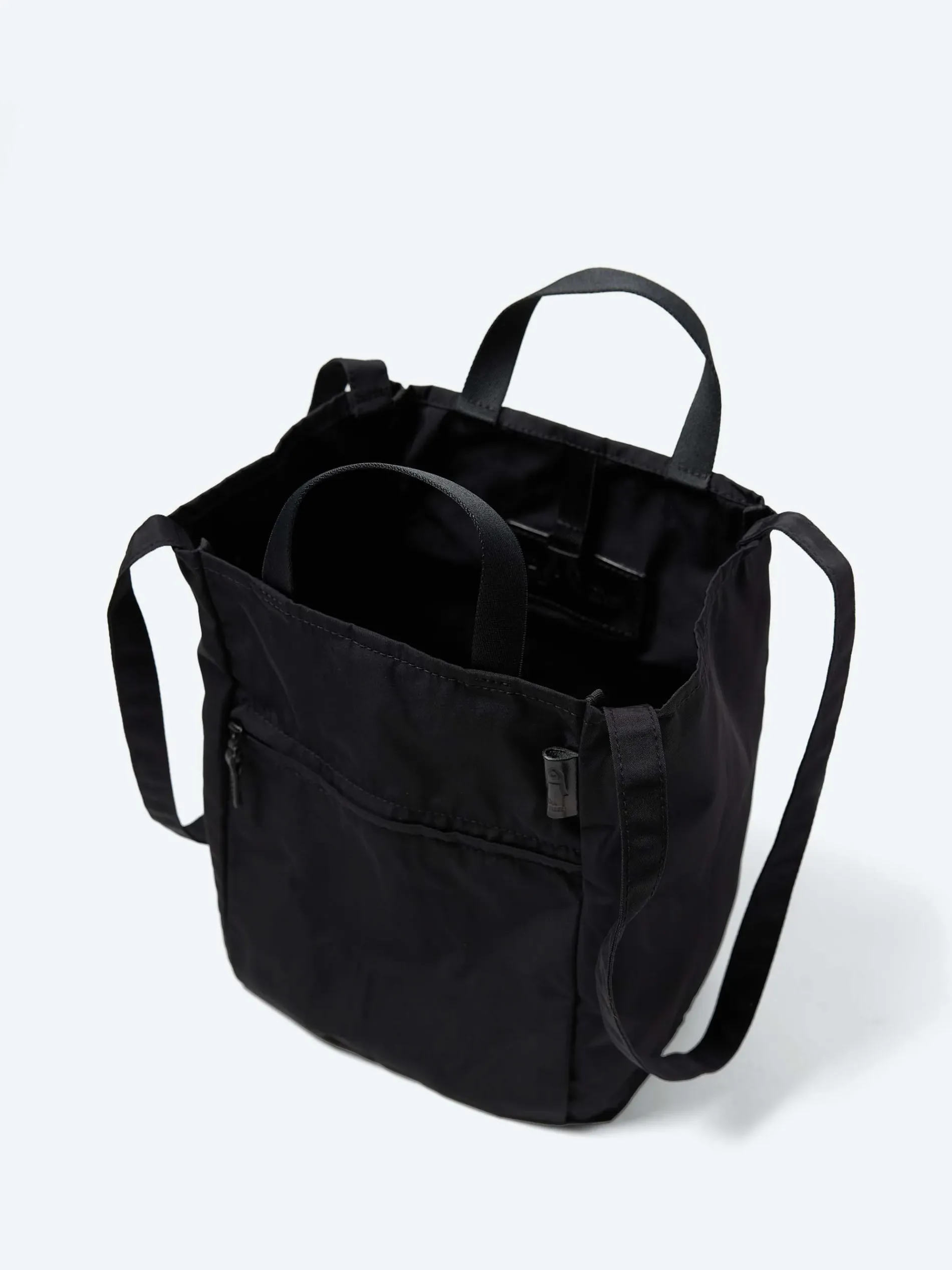 An essential rectangular tote from Amiacalva constructed from scratch-resistant tech-gabardine. Features twin webbing shoulder straps and tote handles for hand-carrying.