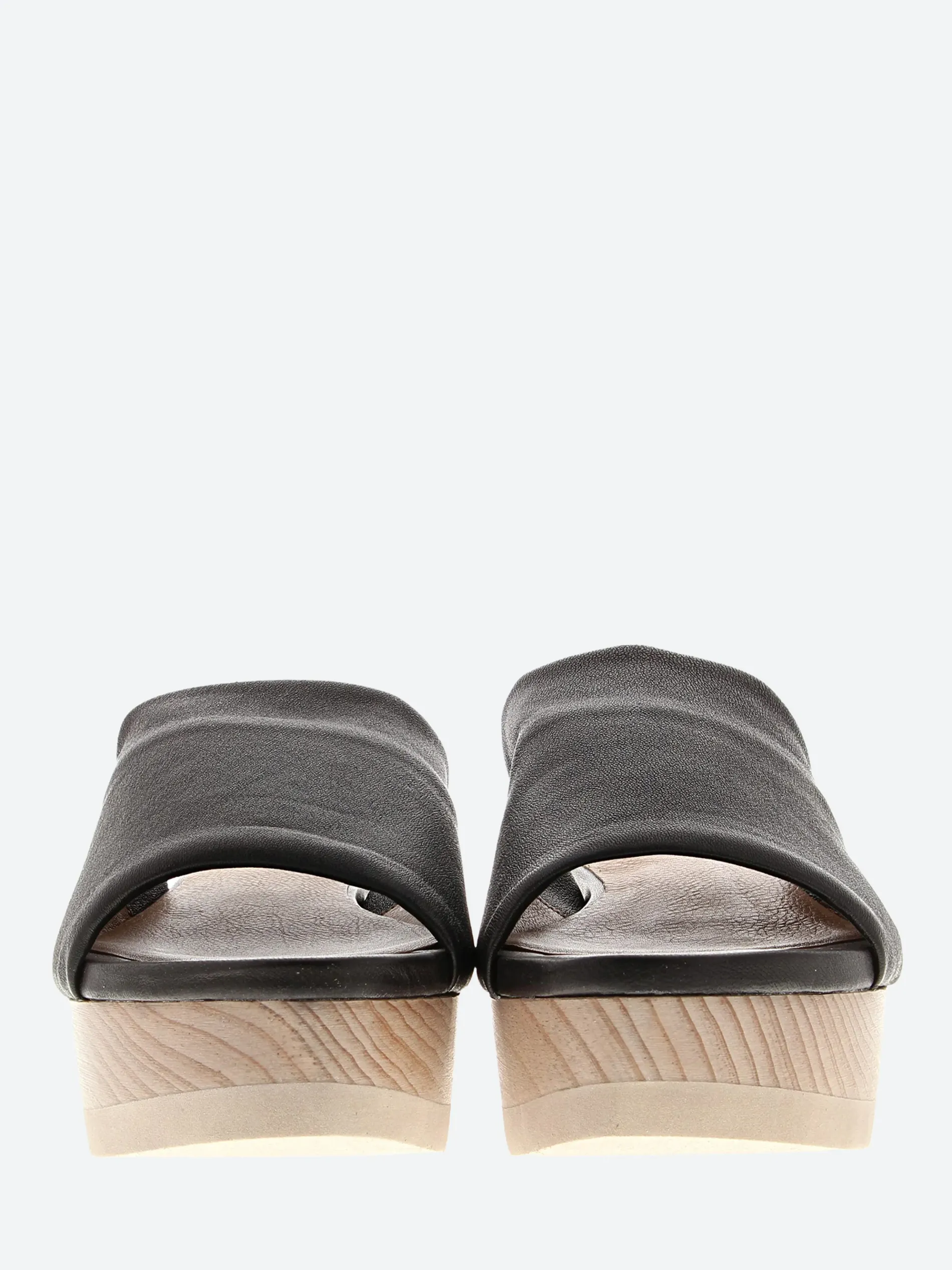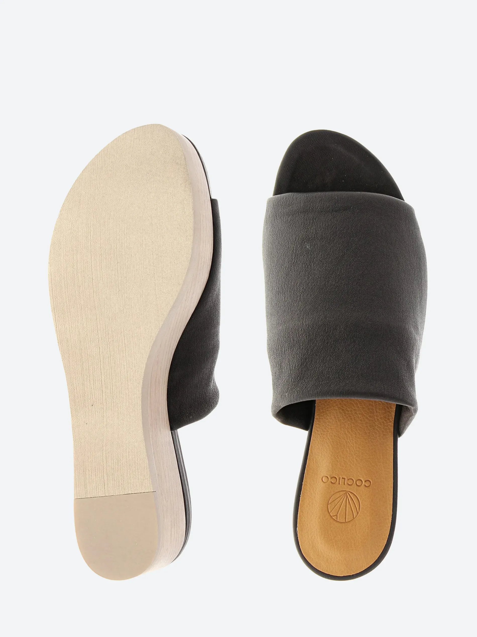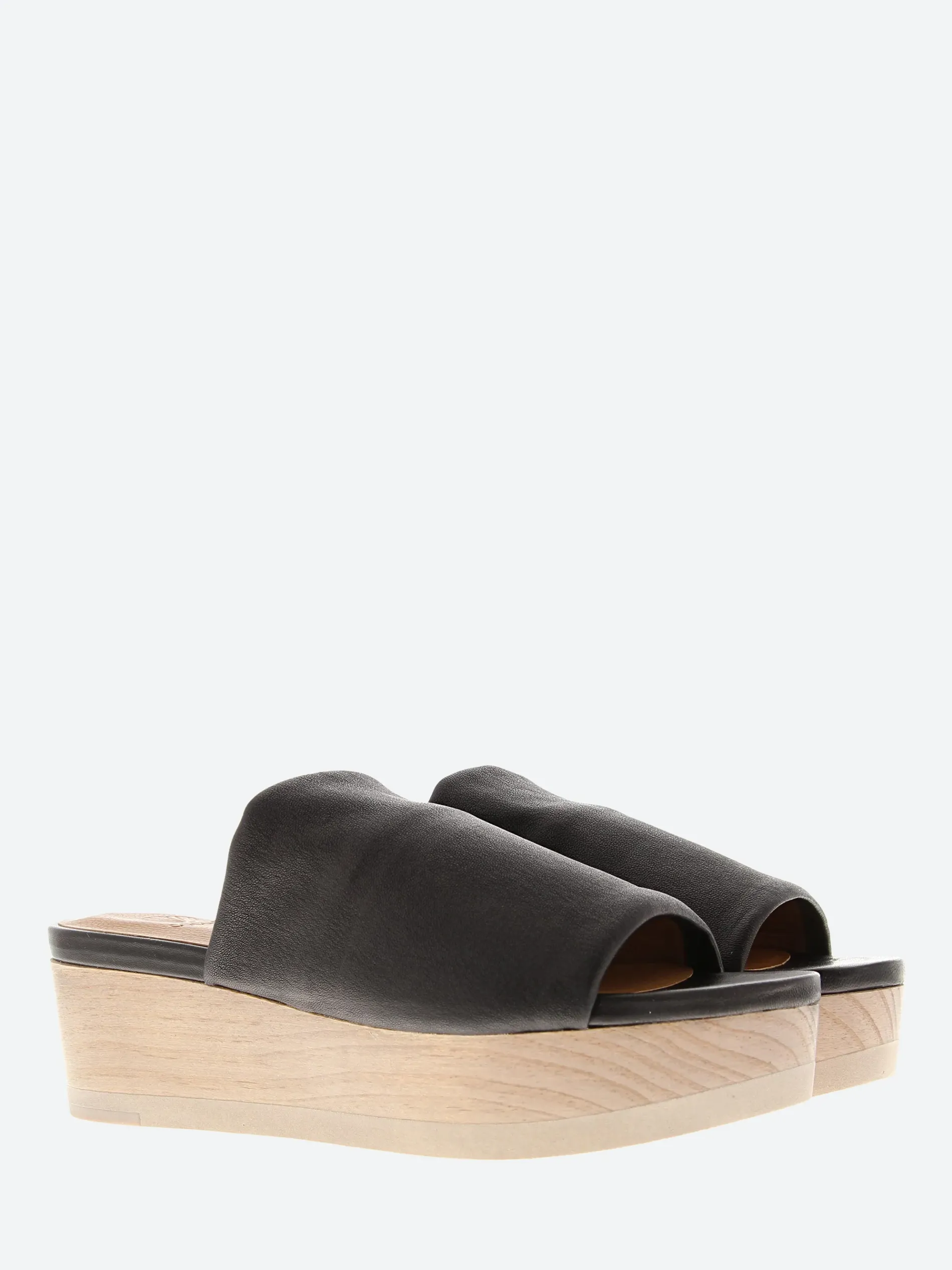A supple, soft leather slide that’s perfect for the warm weather ahead. Finished with a contemporary lightweight pine platform with a shock-absorbing sole.