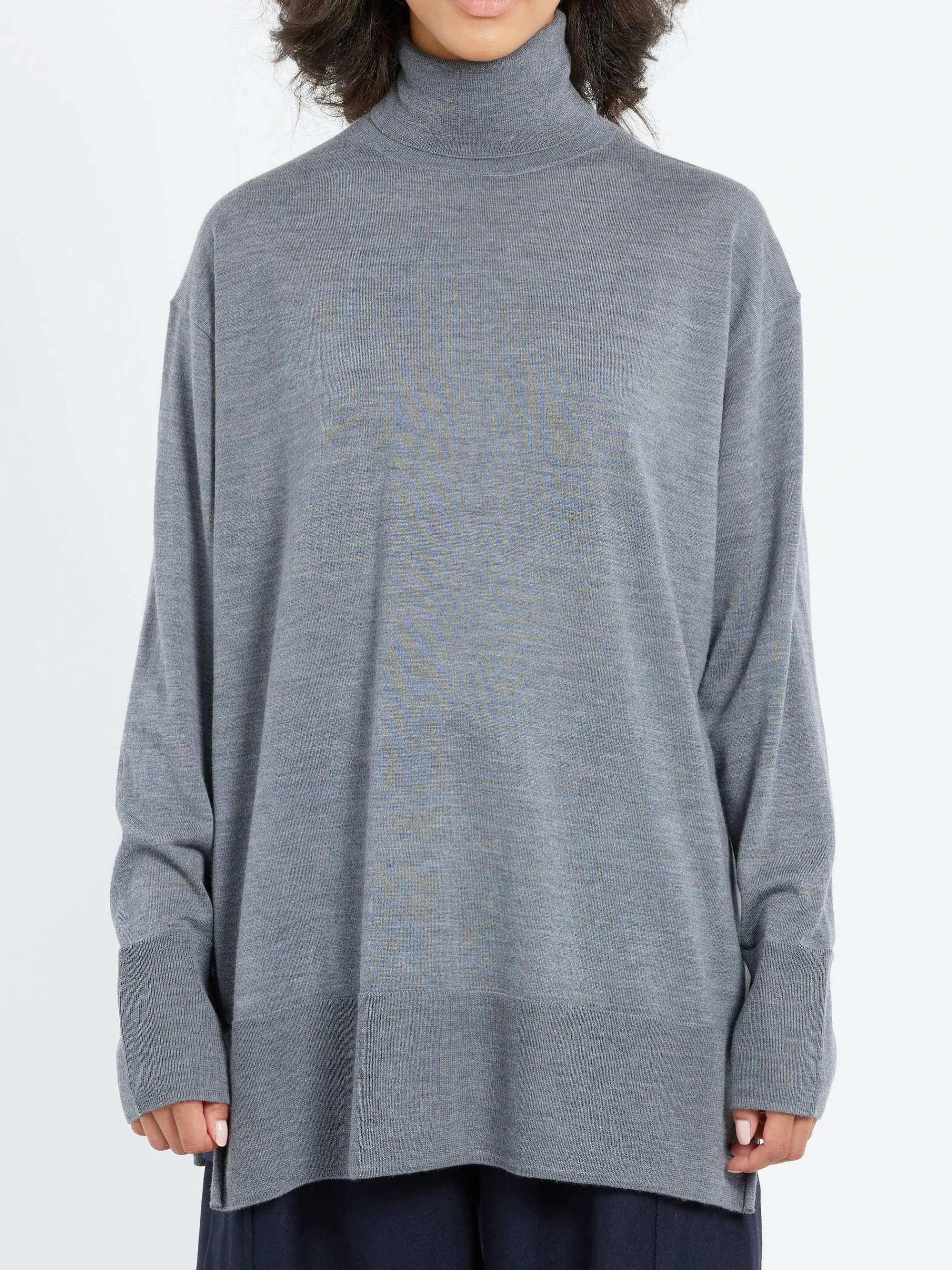 Long-sleeved turtleneck jumper made of pure merino wool.