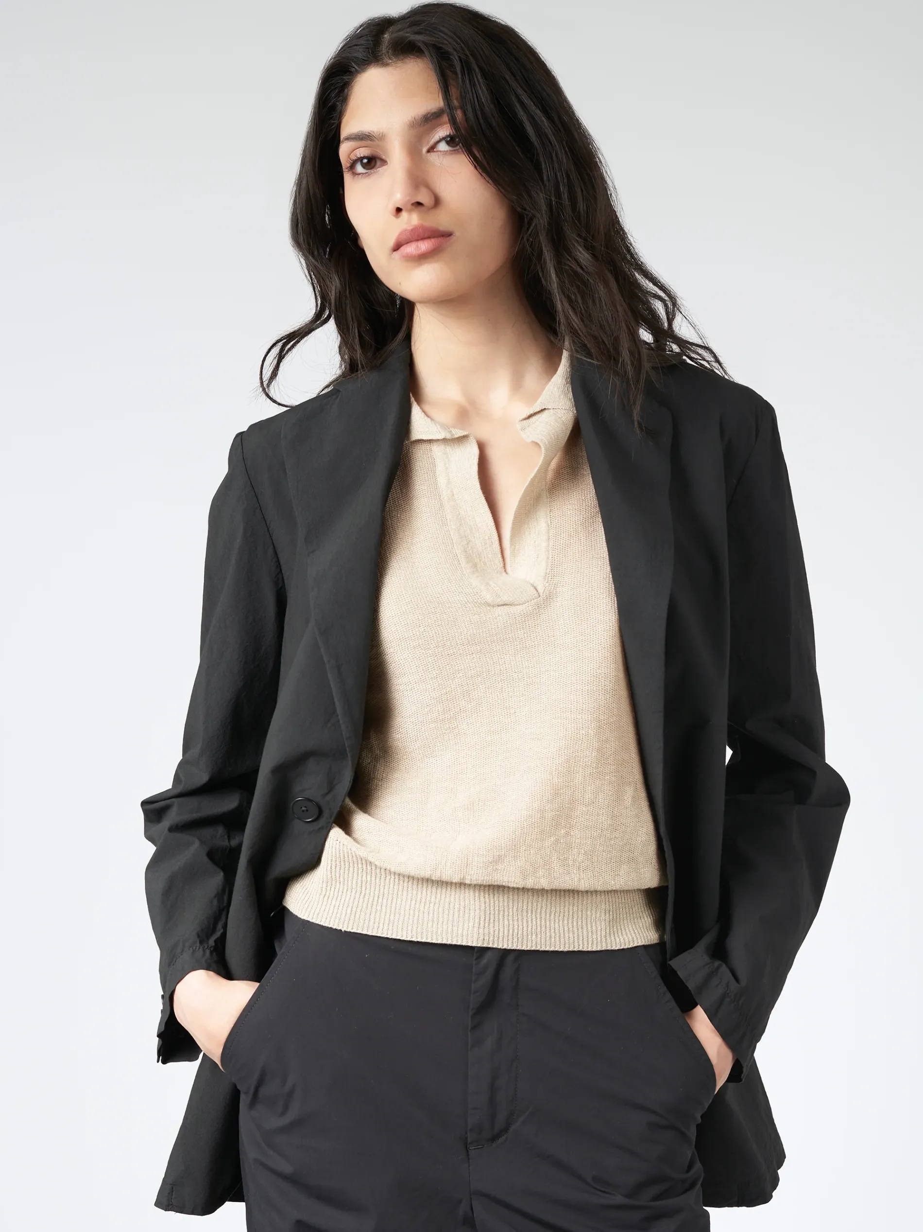 Single breasted blazer, classically tailored oversized fit with flap pockets. Made with natural cotton fabric.