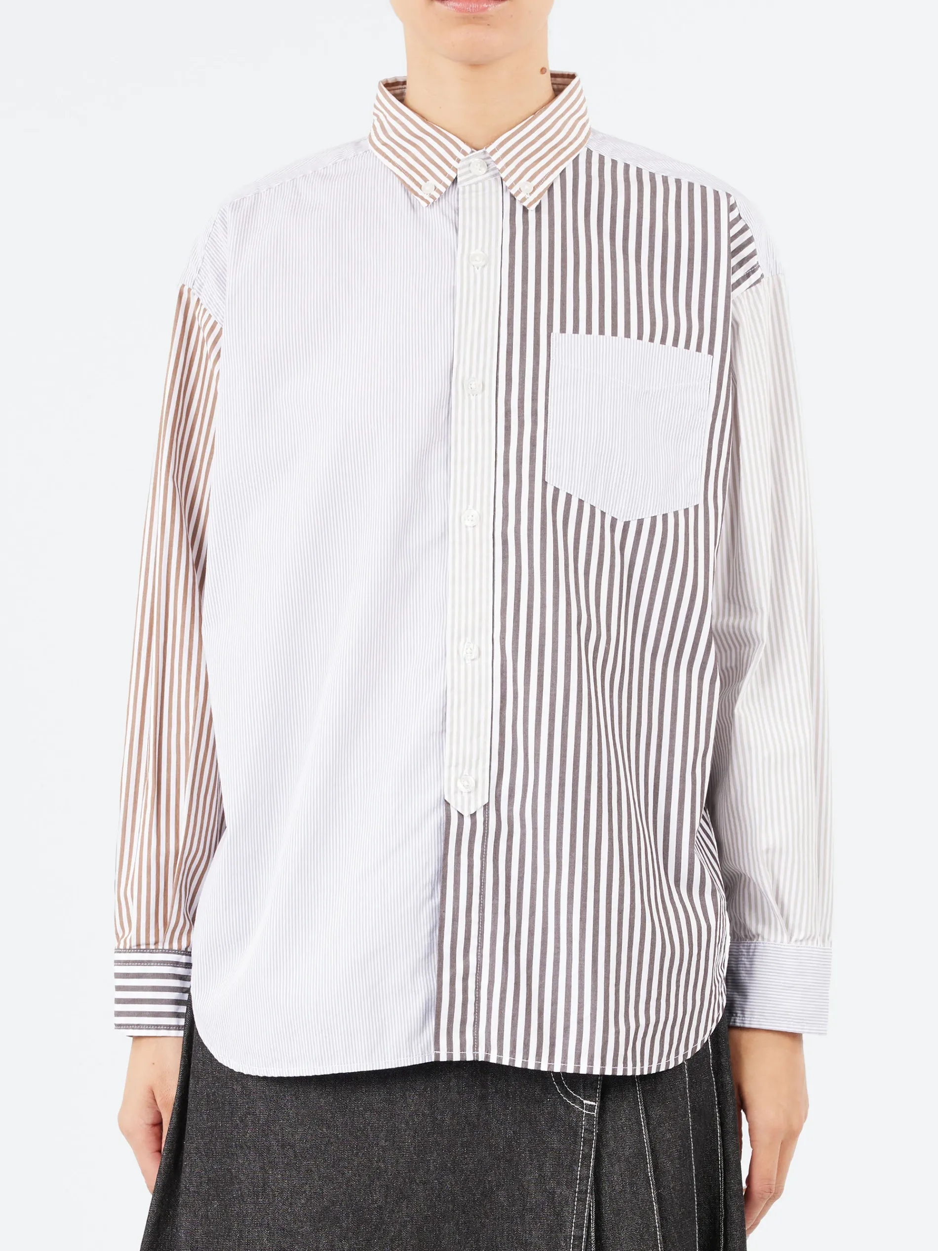 The BEAMS BOY Long Sleeve Shirt is a standout piece that fuses classic menswear elements with a contemporary, oversized silhouette. Made from 100% cotton, it offers a soft, breathable feel ideal for year-round wear. The shirt features striking striped panels, creating a bold yet wearable aesthetic. A relaxed drop-shoulder fit that adds to its effortless charm.