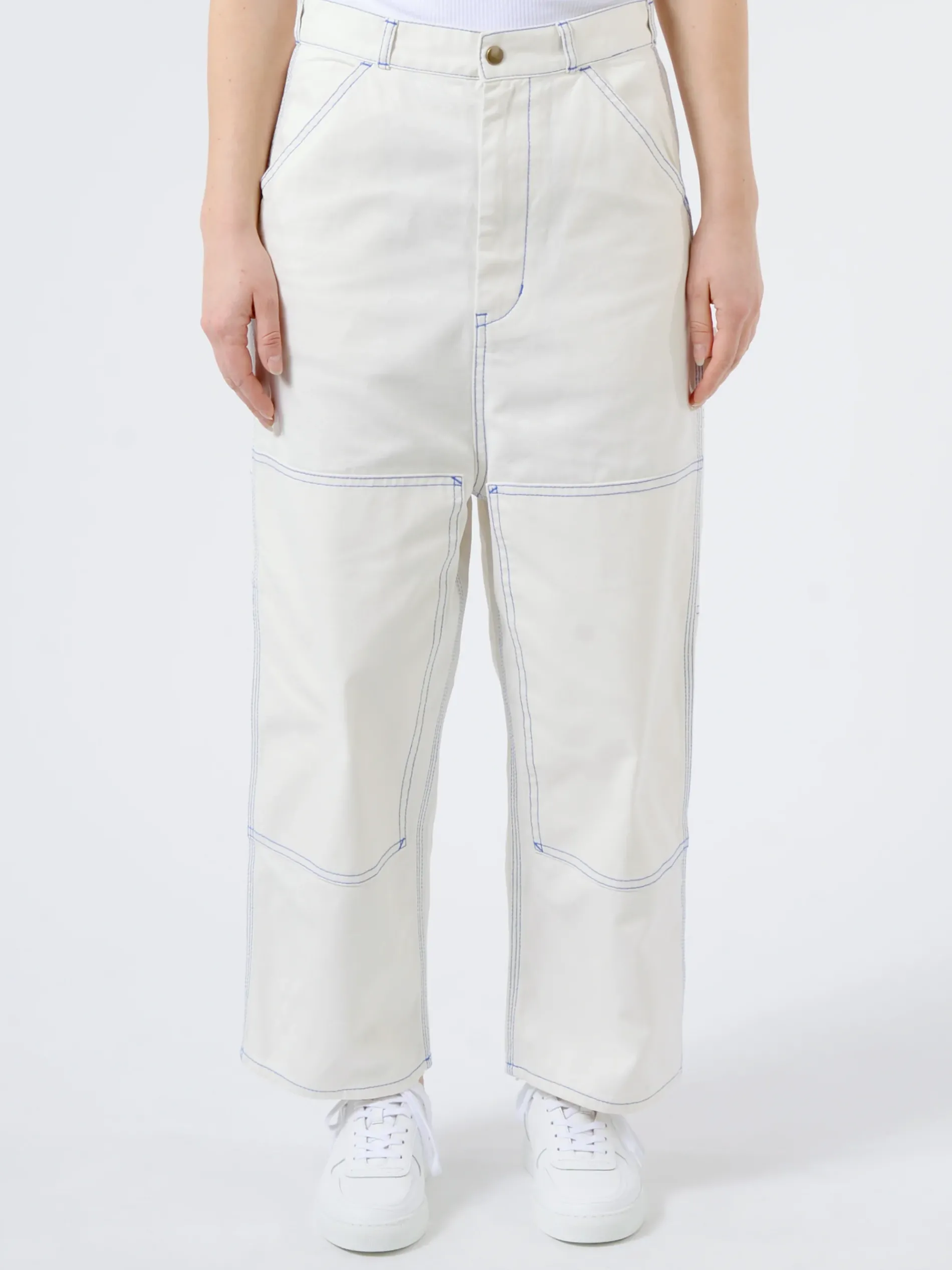 Inspired by vintage double knee pants. Maintaining full-fledged work details, this cropped silhouette has a deep rise.