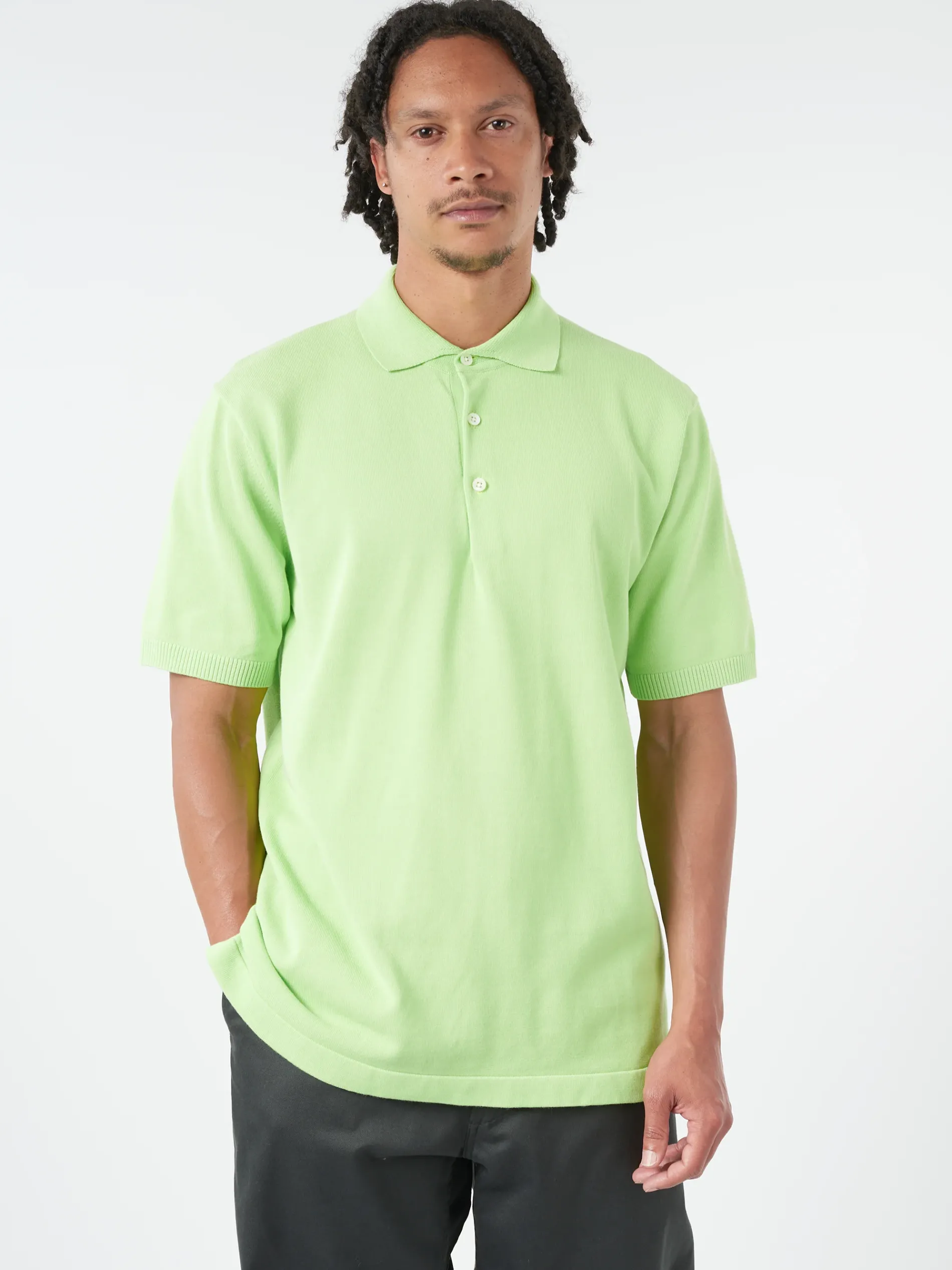 BEAMS PLUS short-sleeved polo shirt with a basic silhouette and simple design. Made with a 12-gauge fabric with a dry and crisp feel.