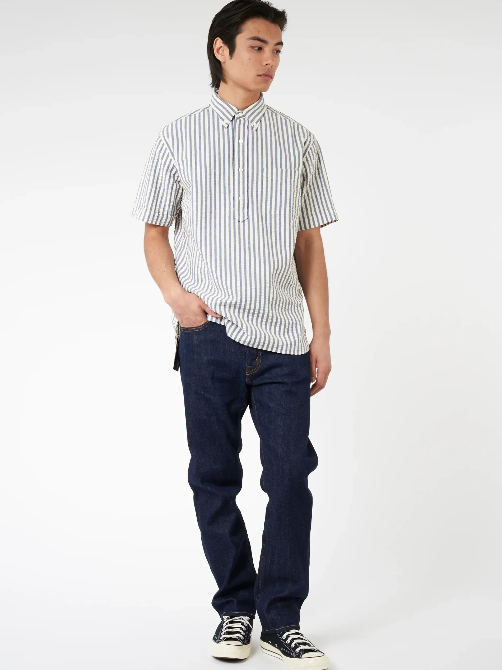 This popover short sleeve button-down style from BEAMS PLUS is constructed from striped seersucker. Embellished with mother-of-pearl buttons for a sophisticated finish.