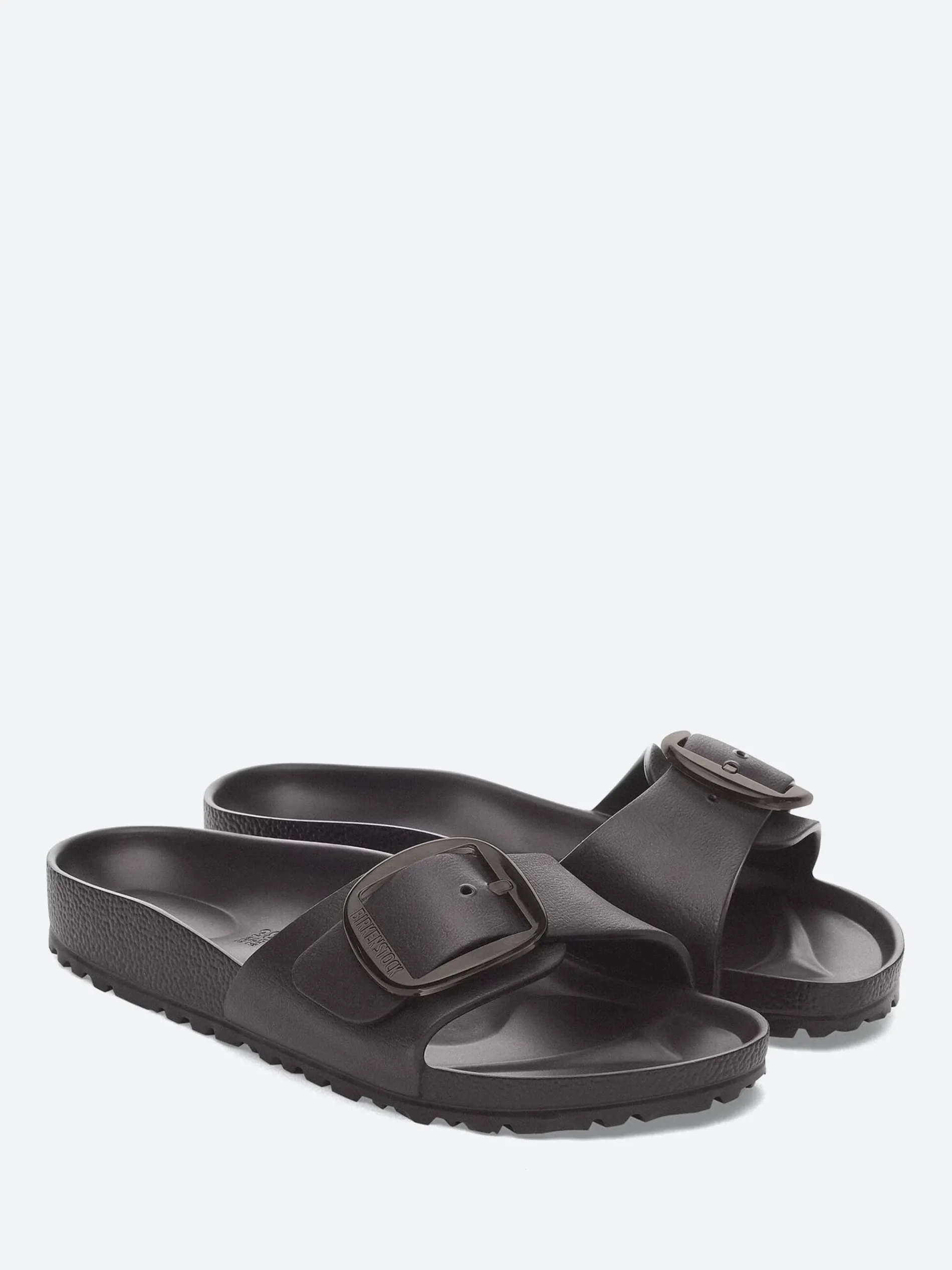 This is a new and modern interpretation of the Birkenstock classic Madrid. This version features their popular Big Buckle made from a stainless synthetic material and makes an impression with its durability and minimalist design. Modeled on the cork sandal, it is made from the ultra-lightweight and highly flexible synthetic material EVA. The high-quality, odor-neutral EVA has been tested for harmful substances and combines numerous positive attributes: it is very light, highly elastic, shock-absorbent, water-resistant, and skin-friendly.