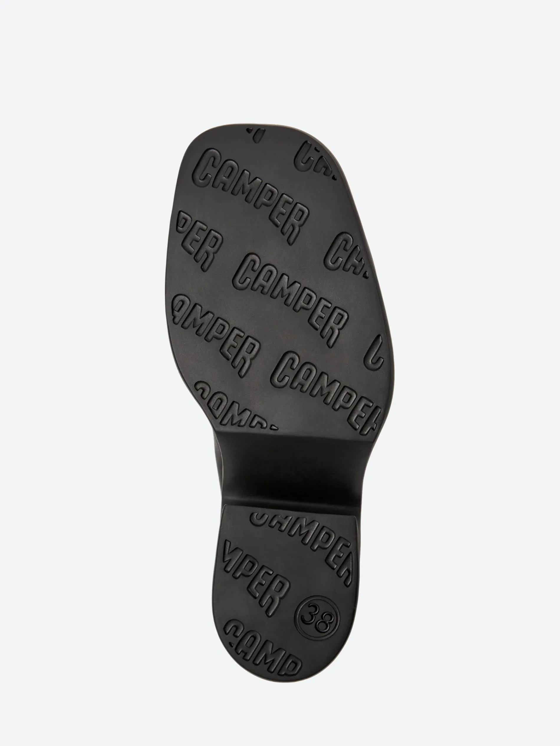 Black leather women’s boots with OrthoLite® Recycled™ non-removable footbeds, and rubber outsoles.