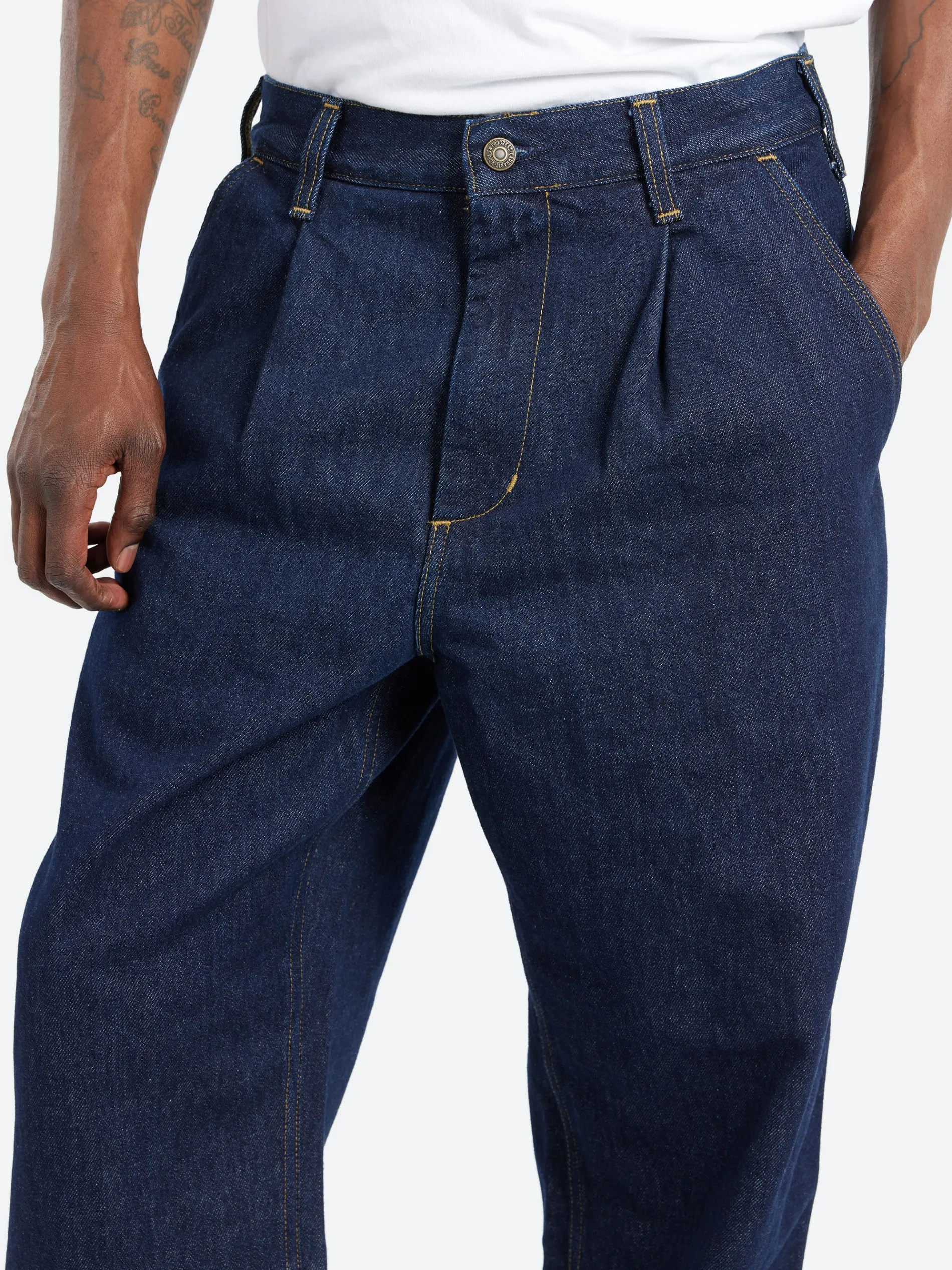 The Jace Pant is made from heavyweight cotton denim in a loose tapered fit. The item is also detailed with contrast bartack stitching at vital stress points. An artificial leather Square Label appears on the rear pocket.