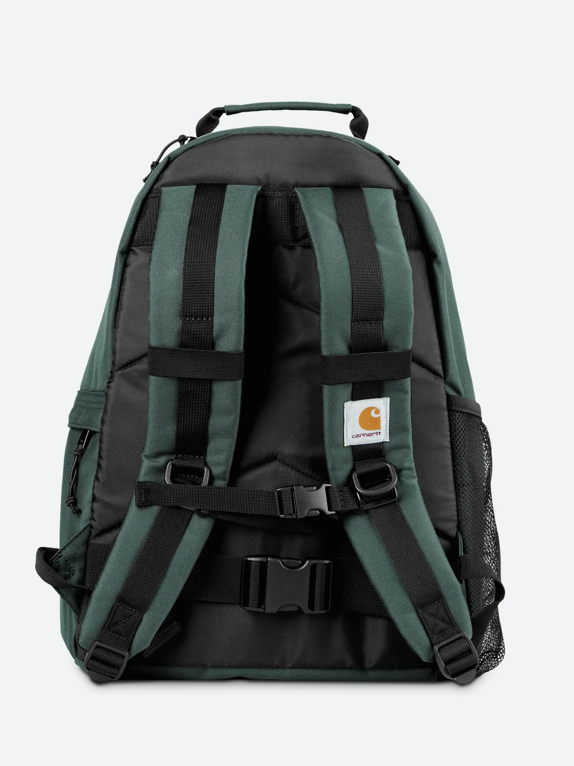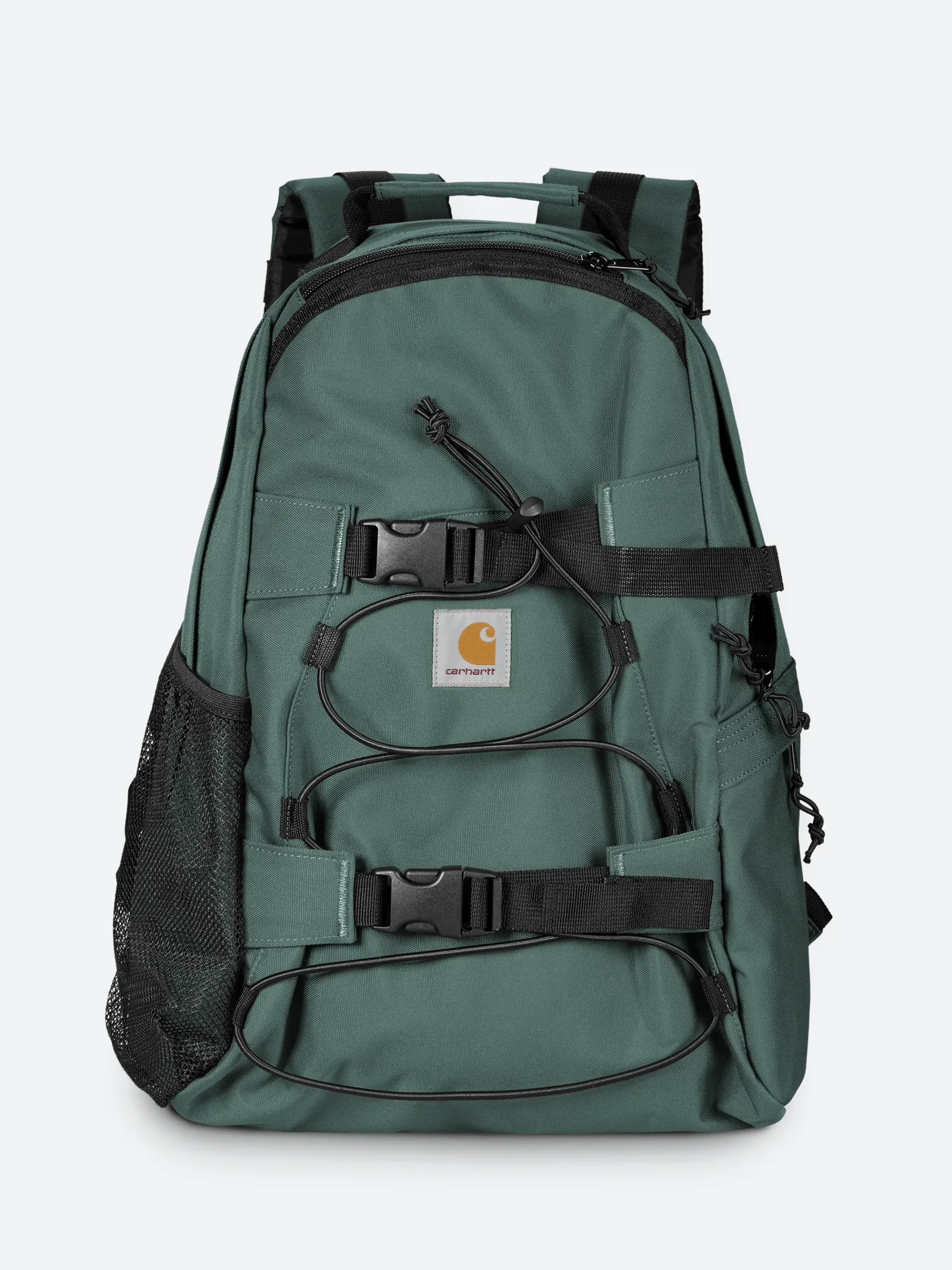 The Kickflip Backpack is a midweight, utilitarian backpack constructed from a water-repellent 11.2 oz polyester Duck Canvas. Features multiple pockets and board clips. Woven Carhartt WIP label on front.