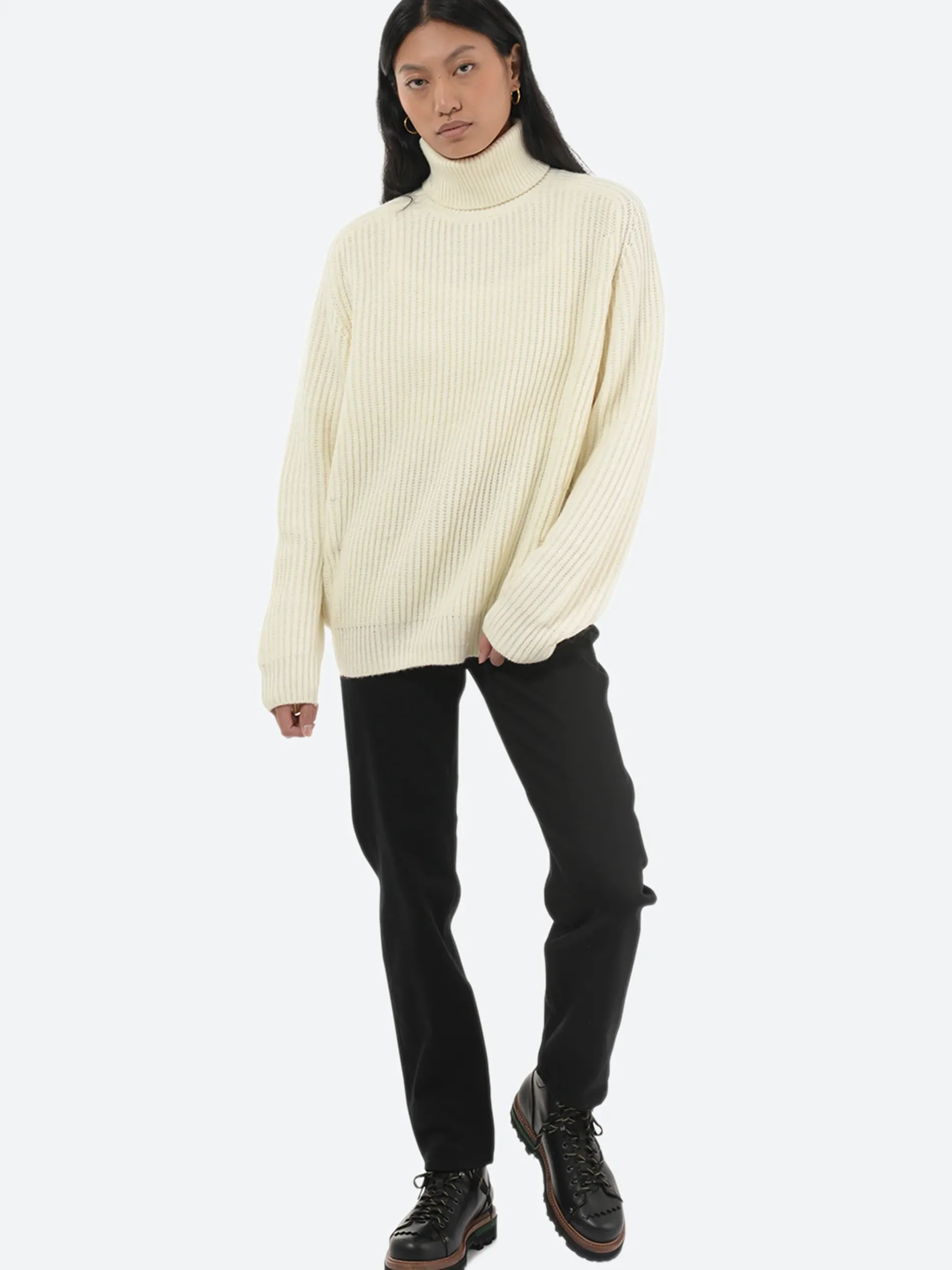 Carhartt WIP Women’s Mia Sweater is knit in a loose silhouette from a five-gauge blend of acrylic yarn, viscose and wool, resulting in style with a softly ribbed and textured feel.