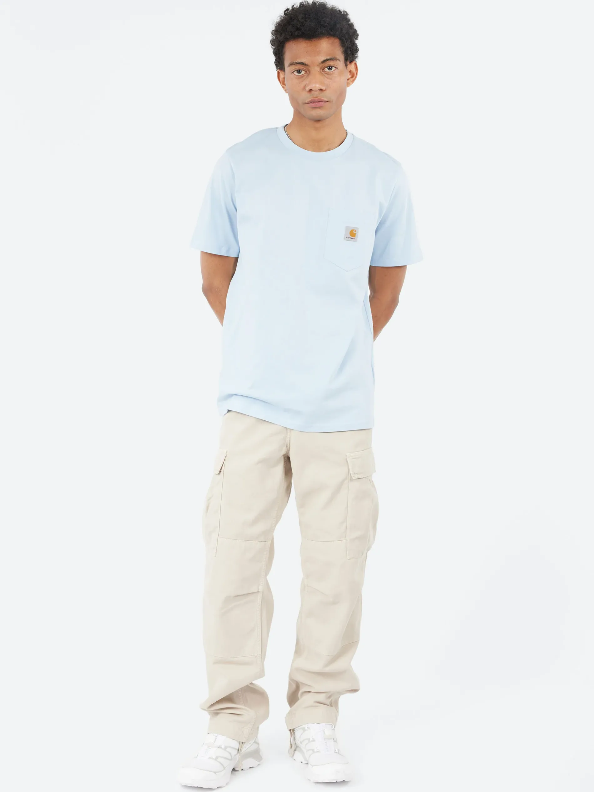 The Regular Cargo Pant is constructed from durable Moraga twill, which is a midweight organic cotton fabric that has been garment-dyed, resulting in subtle color variations throughout and a softer feel. The style is cut in a regular fit with a low waist, and features double-layer knees, adding to its robust qualities. Multiple patch pockets throughout nod to the garment’s military influences, and tie detailing at the cuffs allow for the fit to be adjusted.