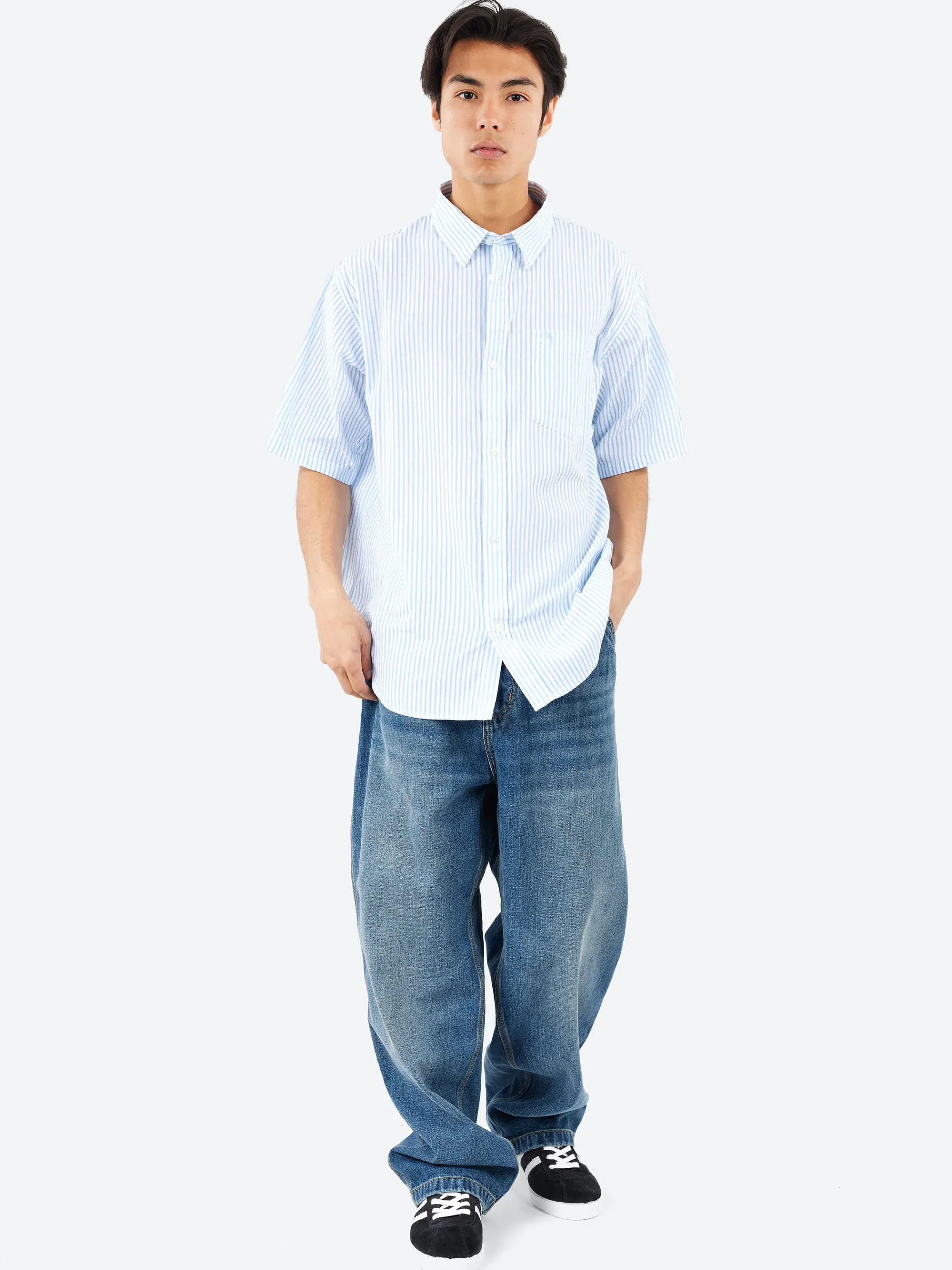The S/S Phelps Shirt, crafted from 100% Cotton Dobby Poplin, offers a loose fit for a relaxed yet stylish look. Featuring a yarn-dyed Phelps Stripe in Bluebird, this shirt has been garment-washed for a soft, worn-in feel.