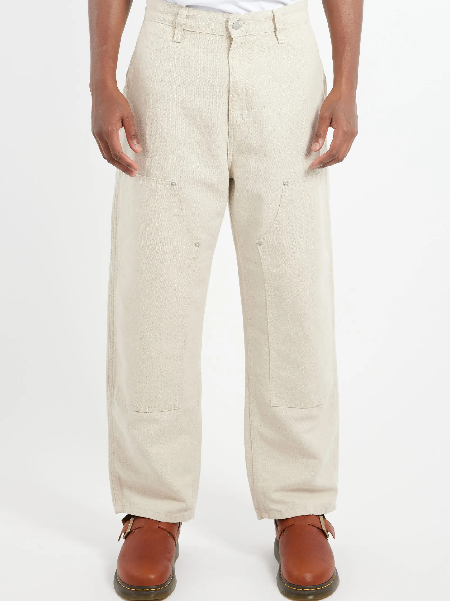 The Walter Double Knee Pant is constructed from a blend of cotton and linen in a relaxed tapered fit. The item also has double-layer knees for extra reinforcement, as well as utilitarian metal rivets, tool pockets, and a hammer loop.