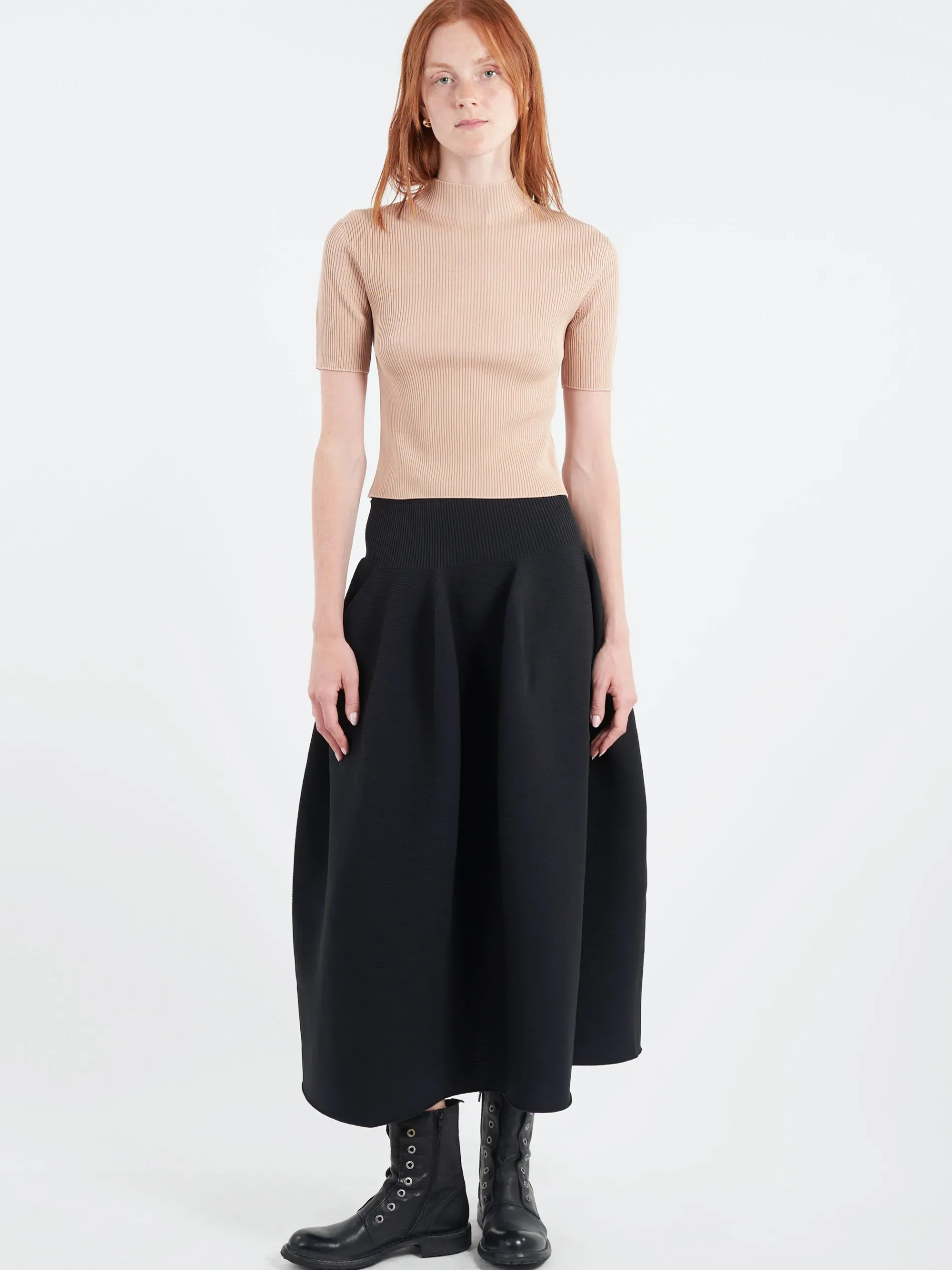 CFCL top crafted from a rib knit structure made by cupro material. The stretch in the fabric ensures a fit that contours the body.