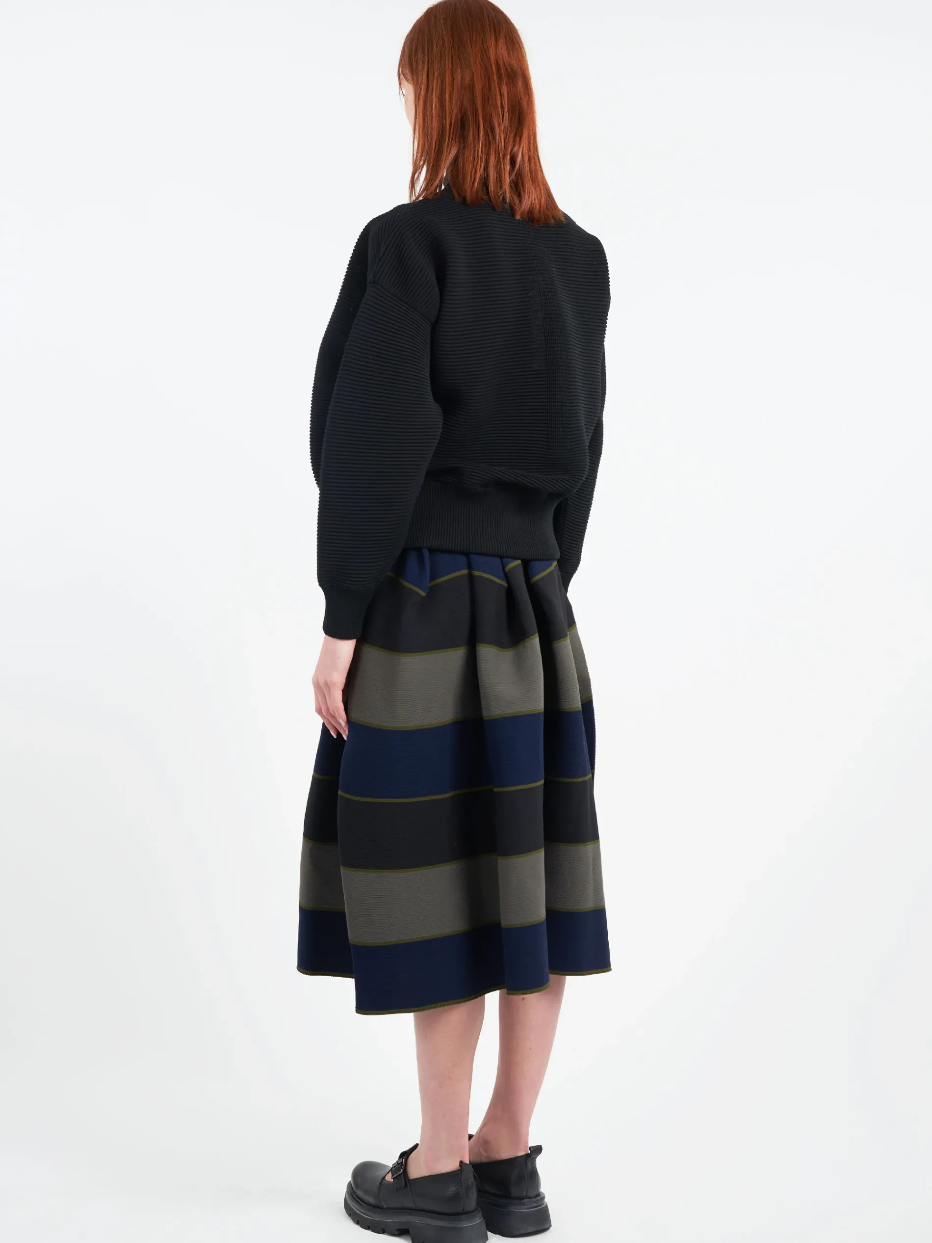 This bomber jacket from CFCL has a textured pintuck knit structure. With its voluminous silhouette and high neck, it provides endless versatility.