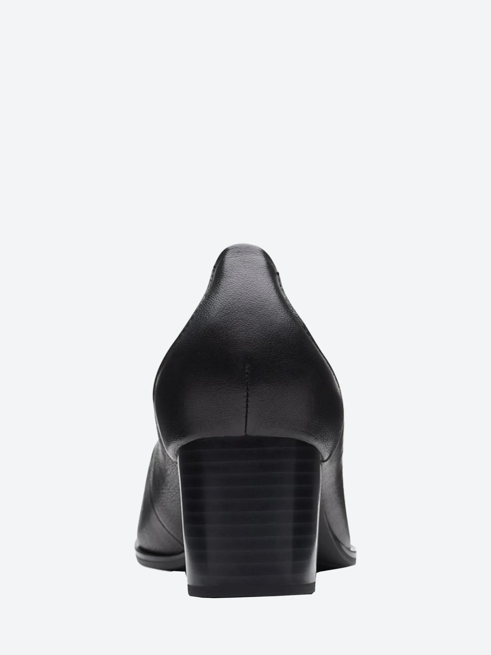 Clarks Loken Step crafted in supple leather and elevated by an easy-wear block heel, this understated profile teams with tailoring and denim alike to prove itself as the ultimate smart-casual style, this season and the next.