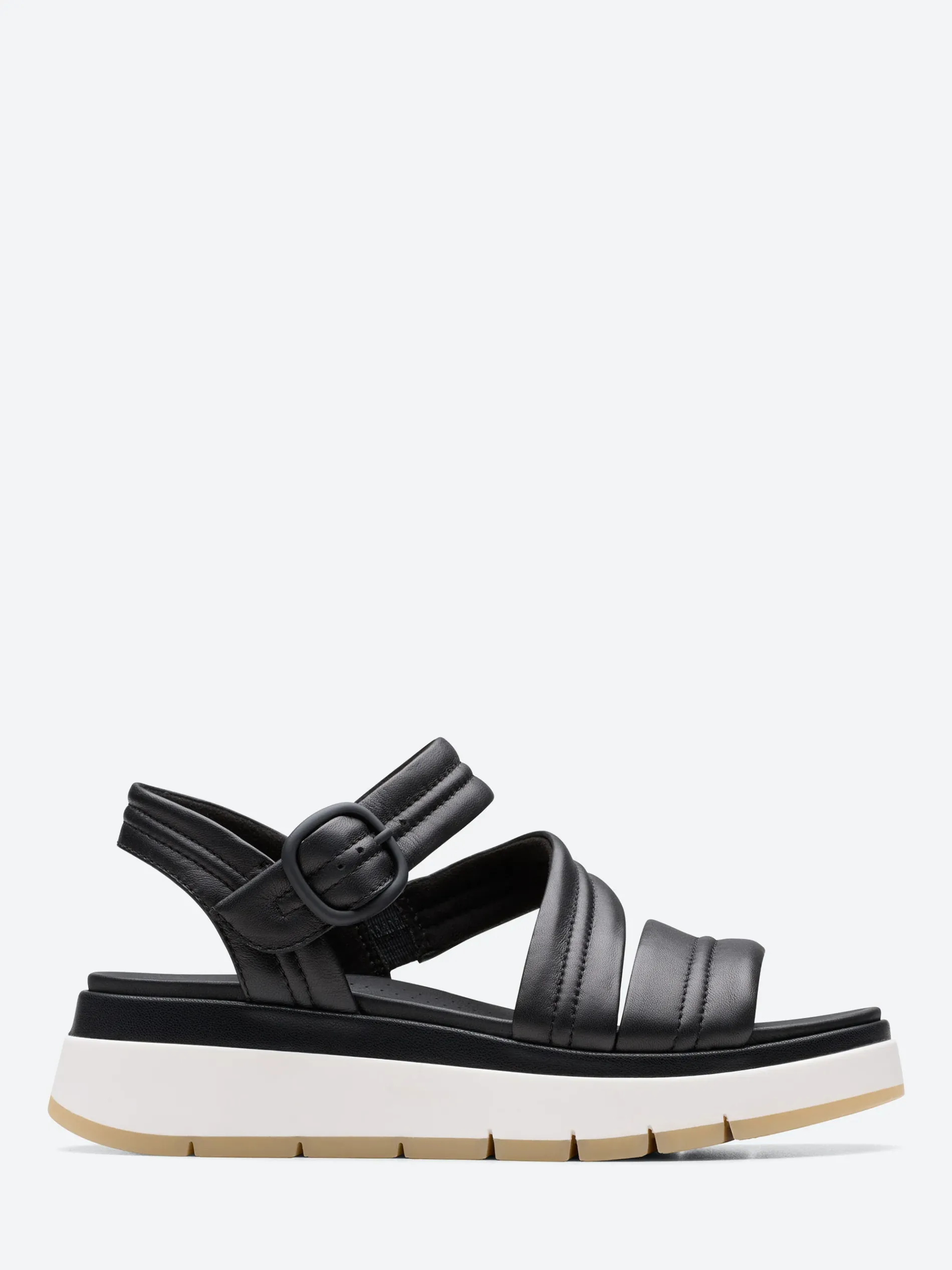 An effortlessly cool sandal to style up or down, Tuscan Strap combines a platform-style silhouette with pillow-soft cushioning. A bold black strappy leather upper wraps the foot perfectly, while Clarks’ signature Contour Cushion footbed and flex-grooved sole keep you light on your feet – from running errands at home to spontaneous city getaways.