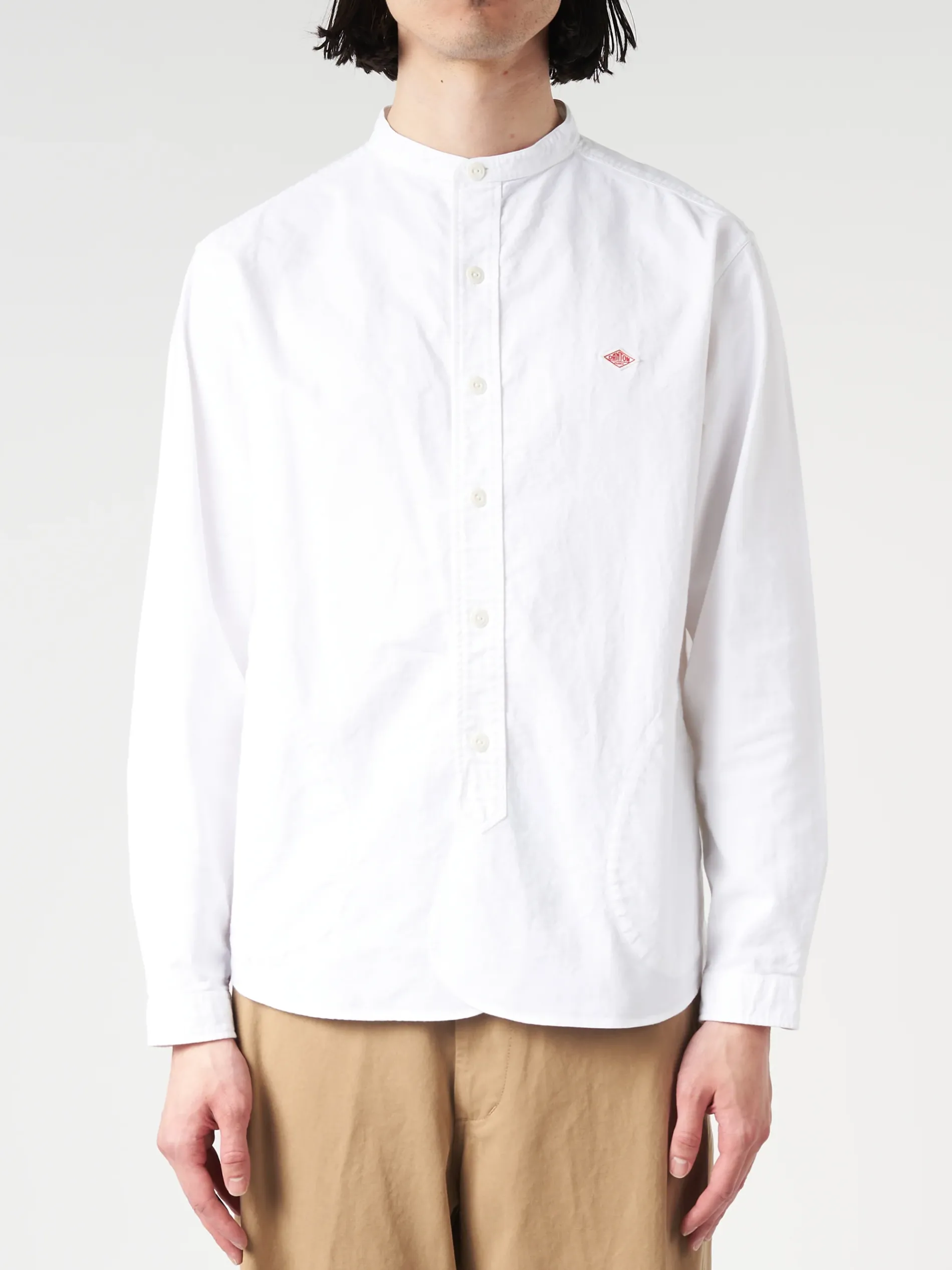 Danton band collar shirt cut from cotton oxford. A classic piece with a touch of the brand’s original functionality.