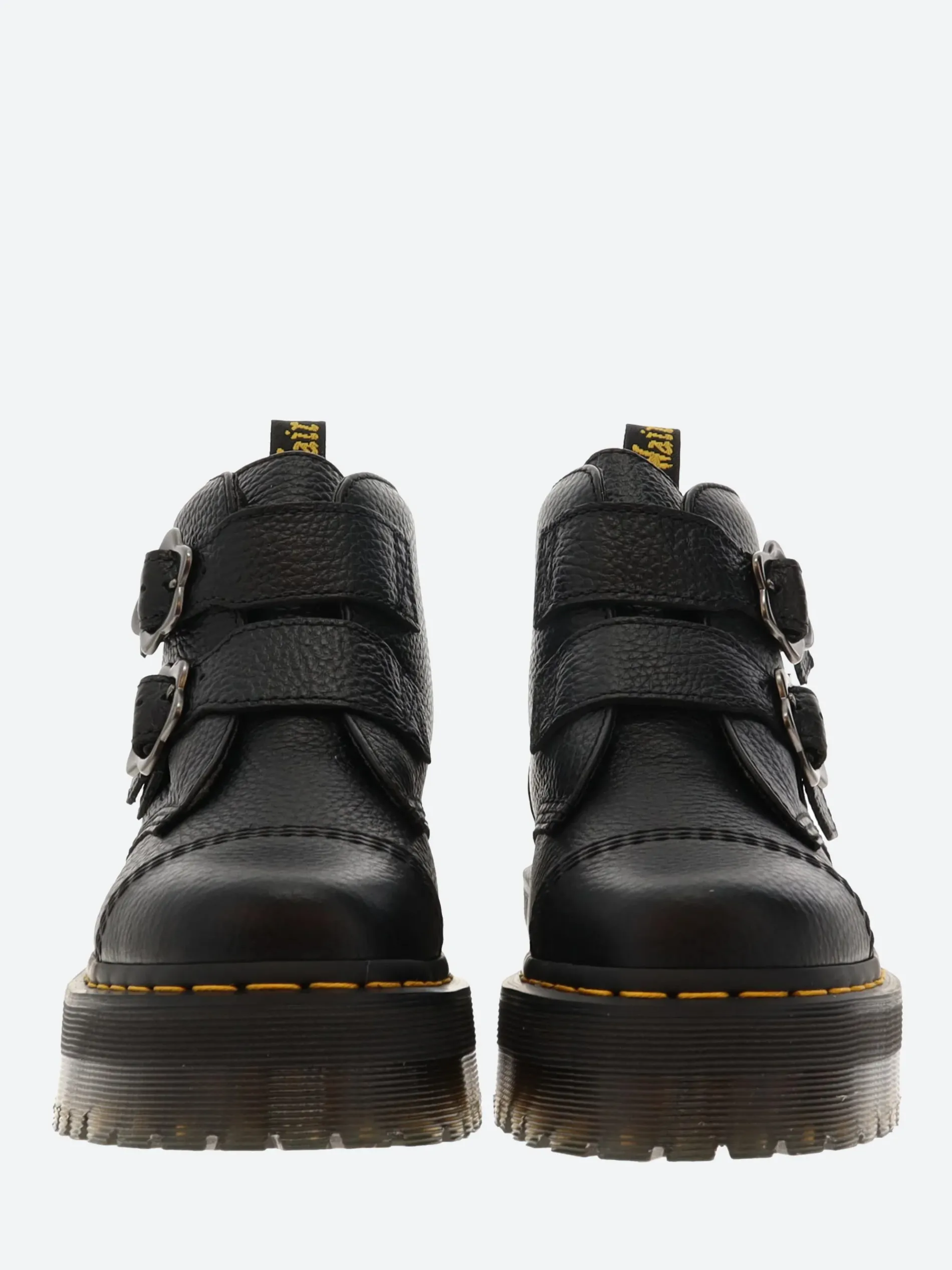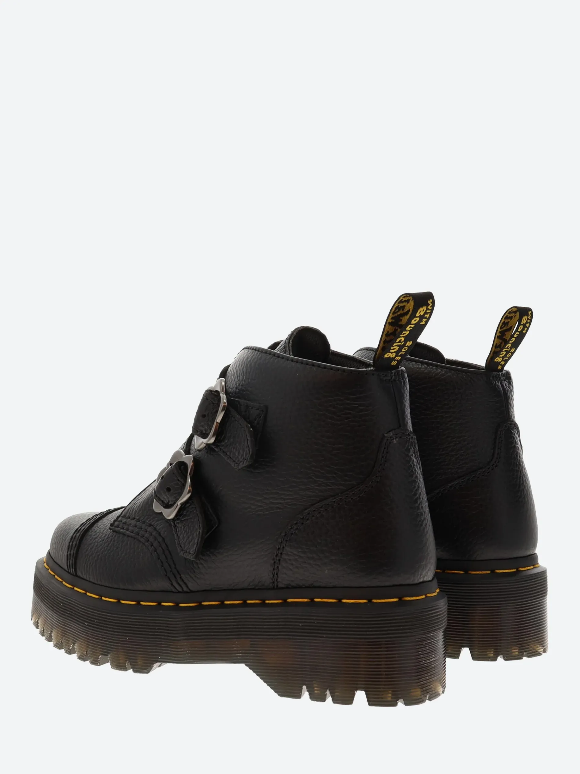 Dr. Martens Devon Flower on a Quad sole. Built from soft, fine grained Milled Nappa – a hardwearing pebbled leather.