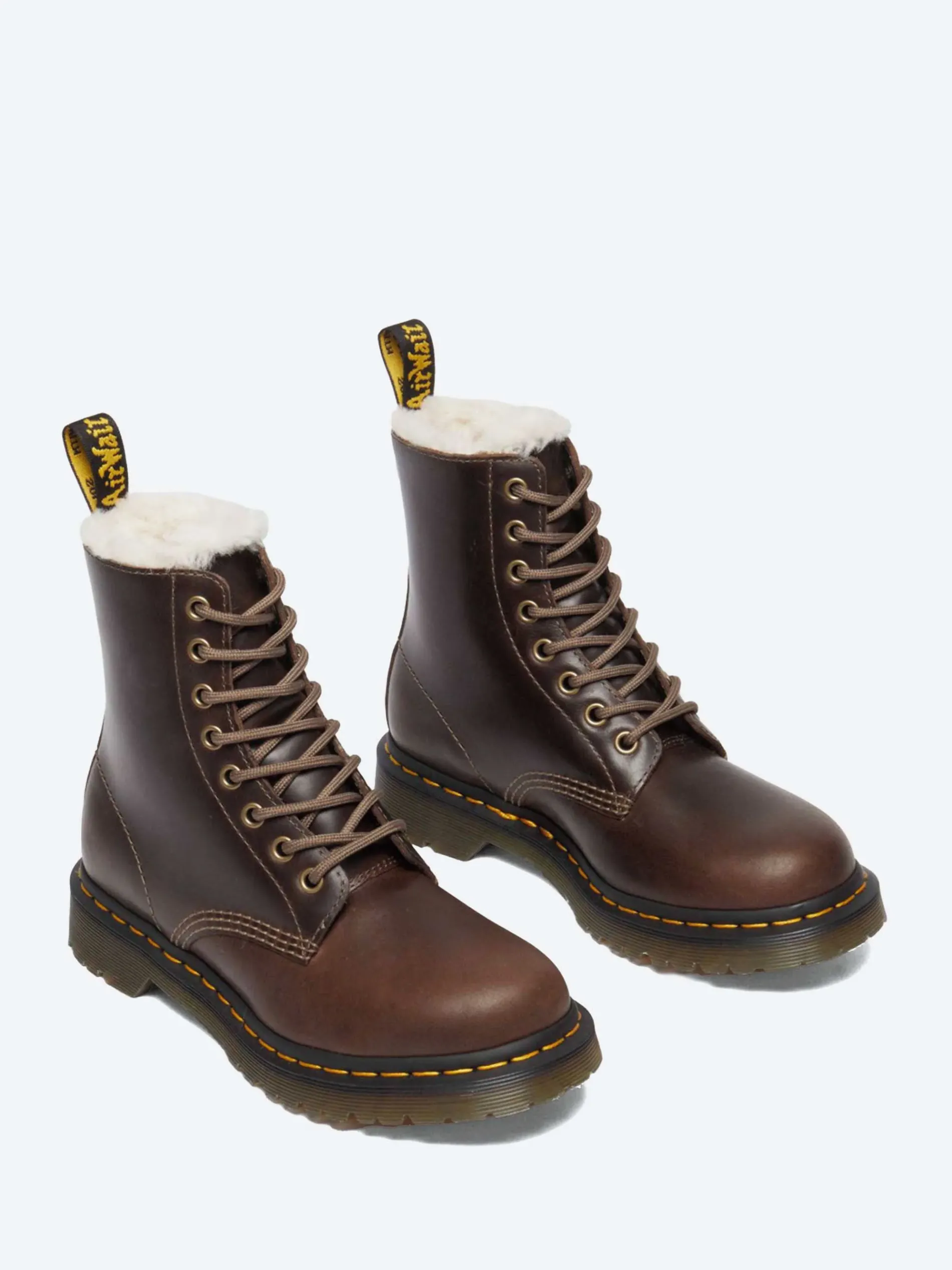 Designed to take cold weather in its stride, these Dr. Martens 1460’s are lined with a soft faux-fur and built from a smooth, waxed leather with a subtle pull-up and satin sheen finish.