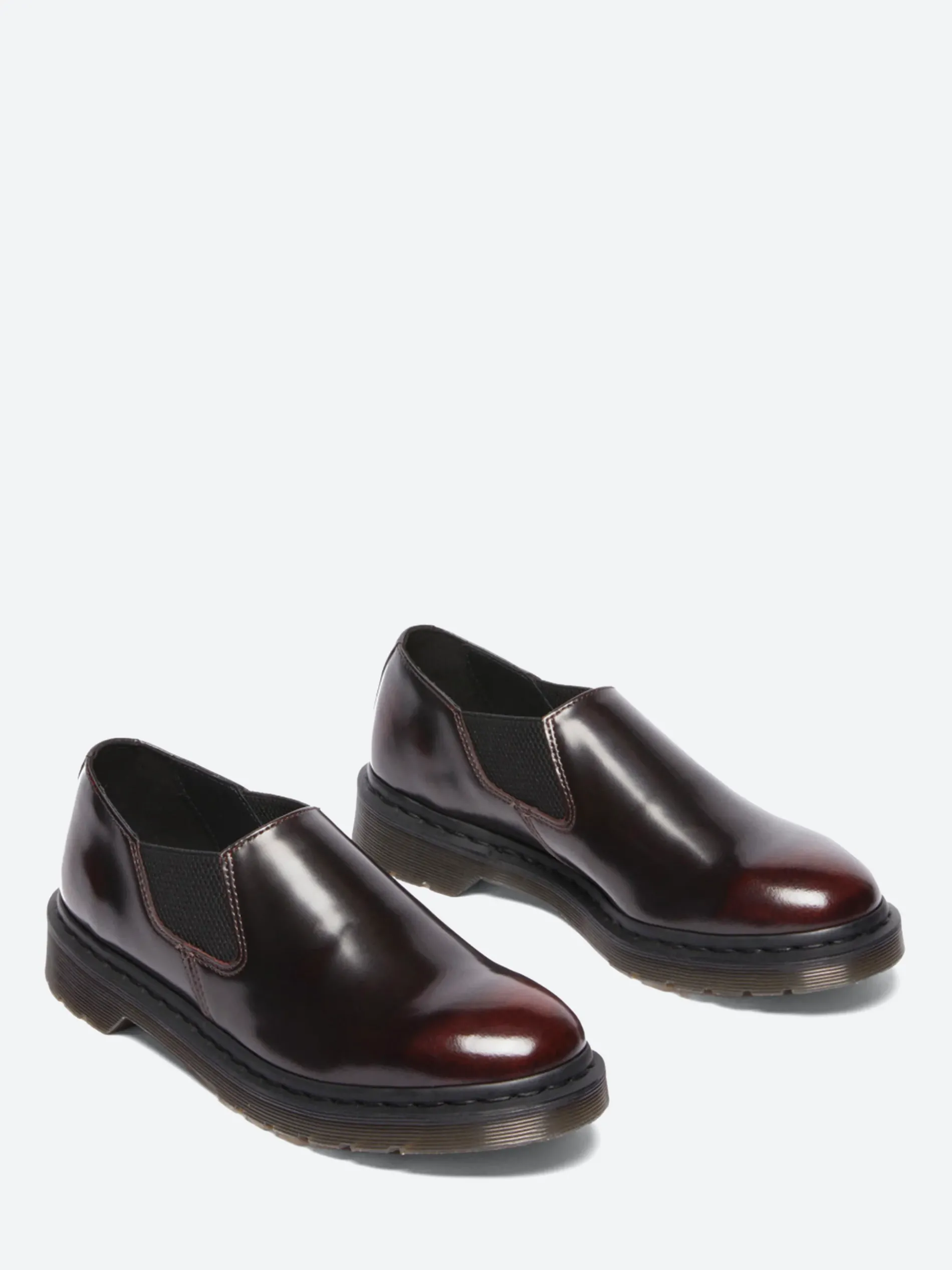 The Louis shoe is a slimline silhouette built on a tapered last to create a sharper profile. Fitted with elasticated gussets to make slipping on and off simple. This version of the shoe is made from two-tone cherry red Arcadia leather, which rubs off over time to reveal a contrasting base color.
