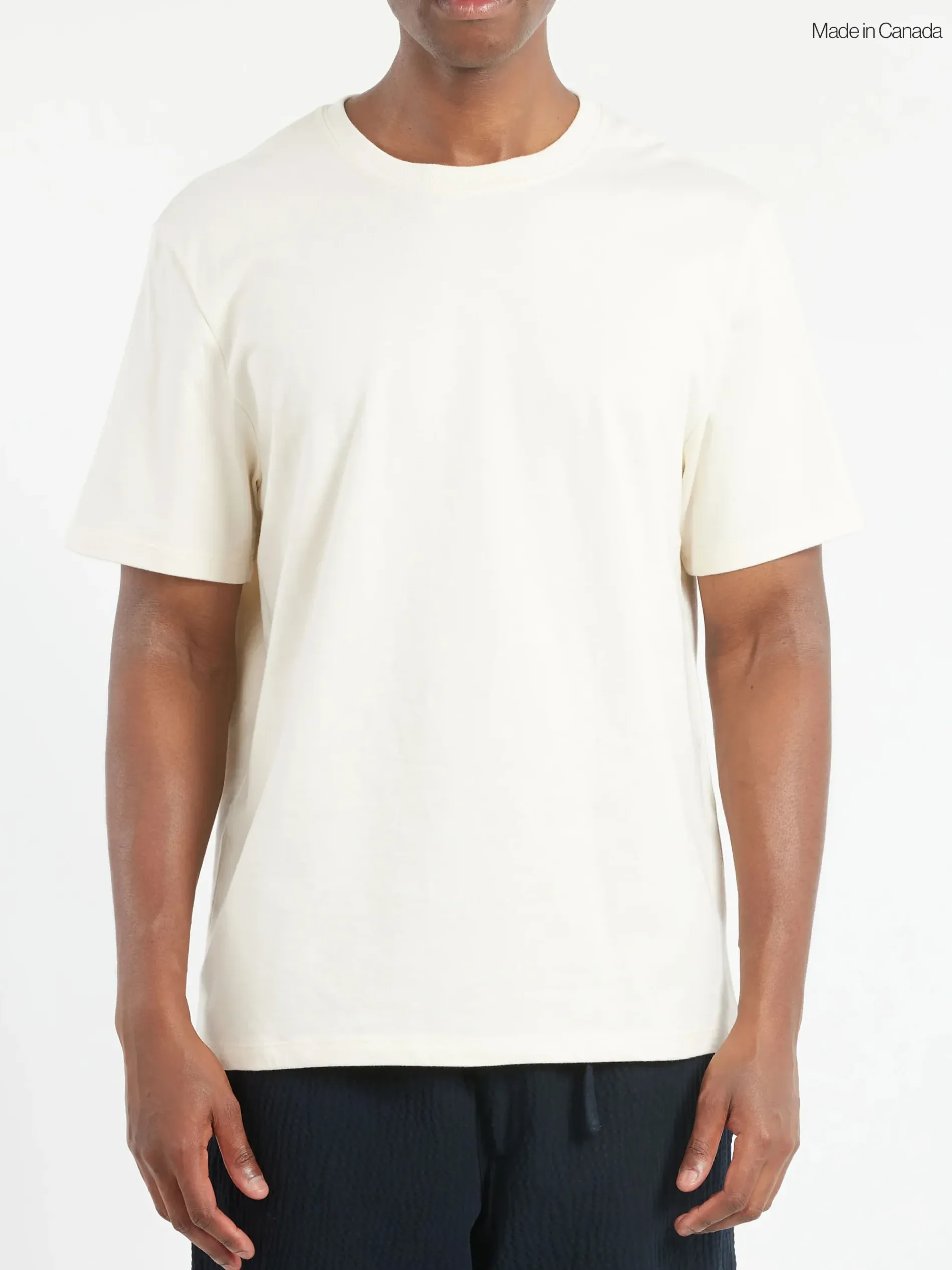 The 250gsm jersey knit organic cotton offers a relaxed fit and unmatched durability—exceptionally created to deliver a classic feel, and all-day comfort. Pre-shrunk for ease and made in Canada with 100% organic cotton, this tee will become your go-to for everyday wear.