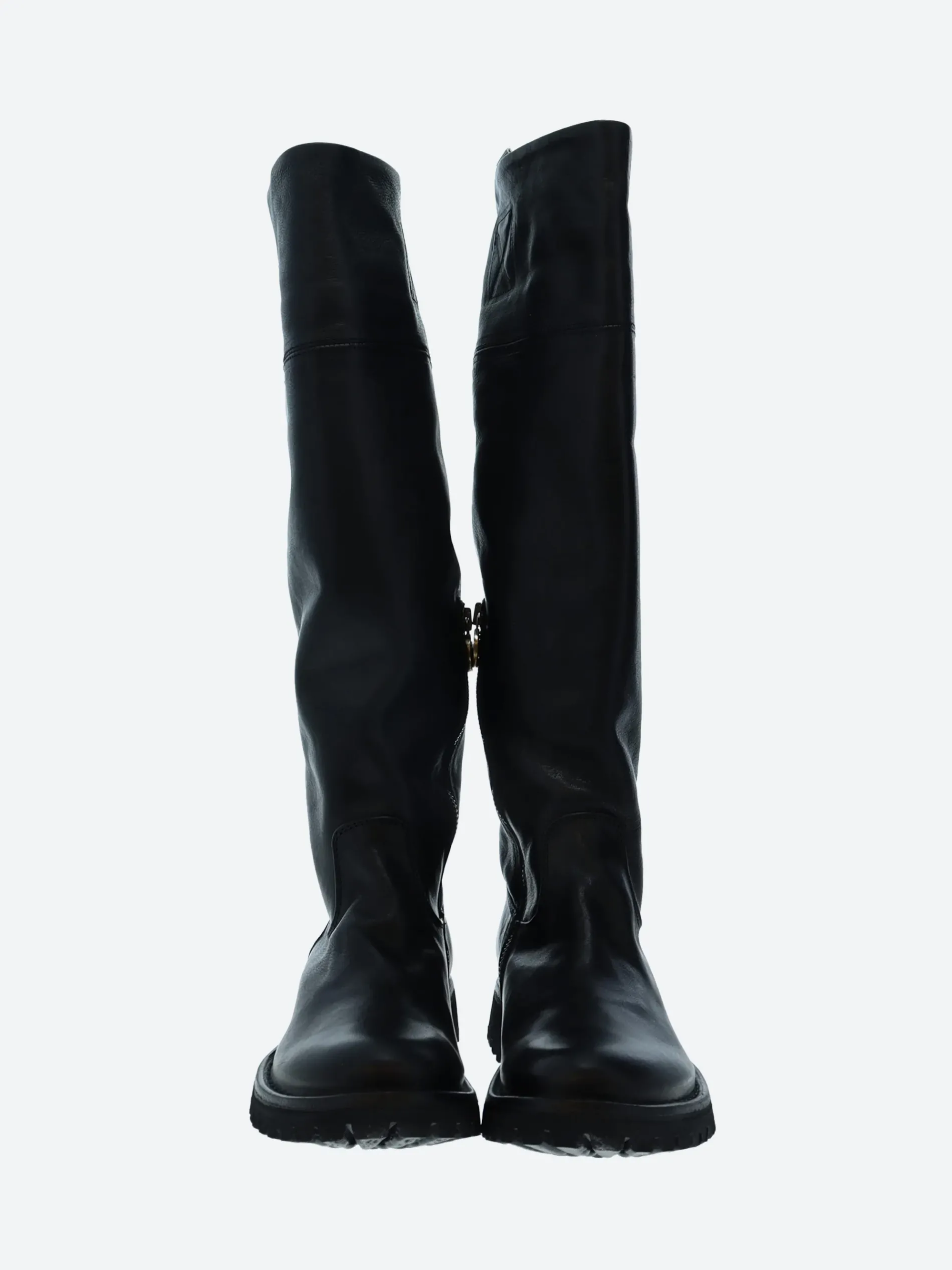 These proper boots are a slouchy version of the equestrian boot with true F+B edge.