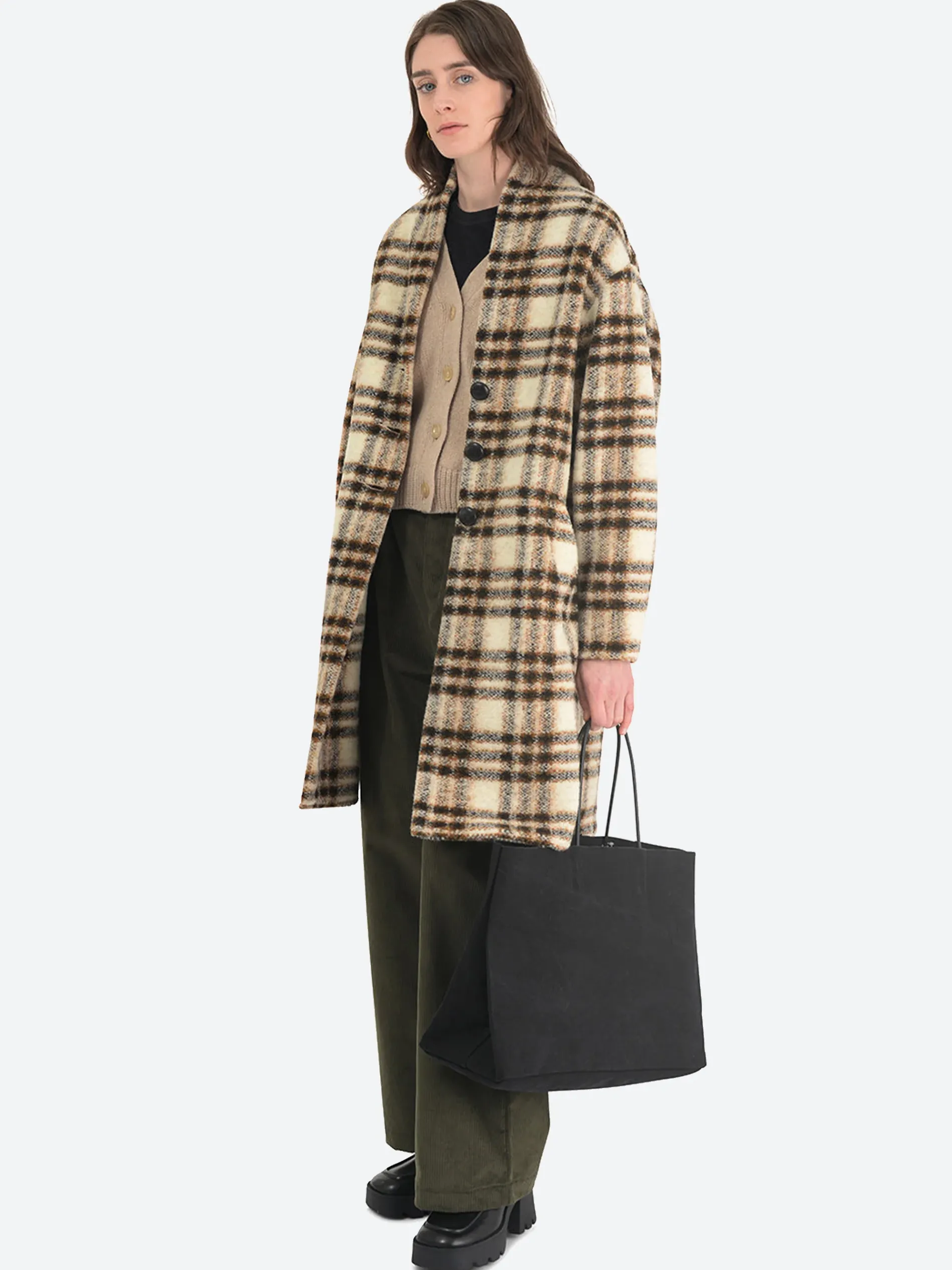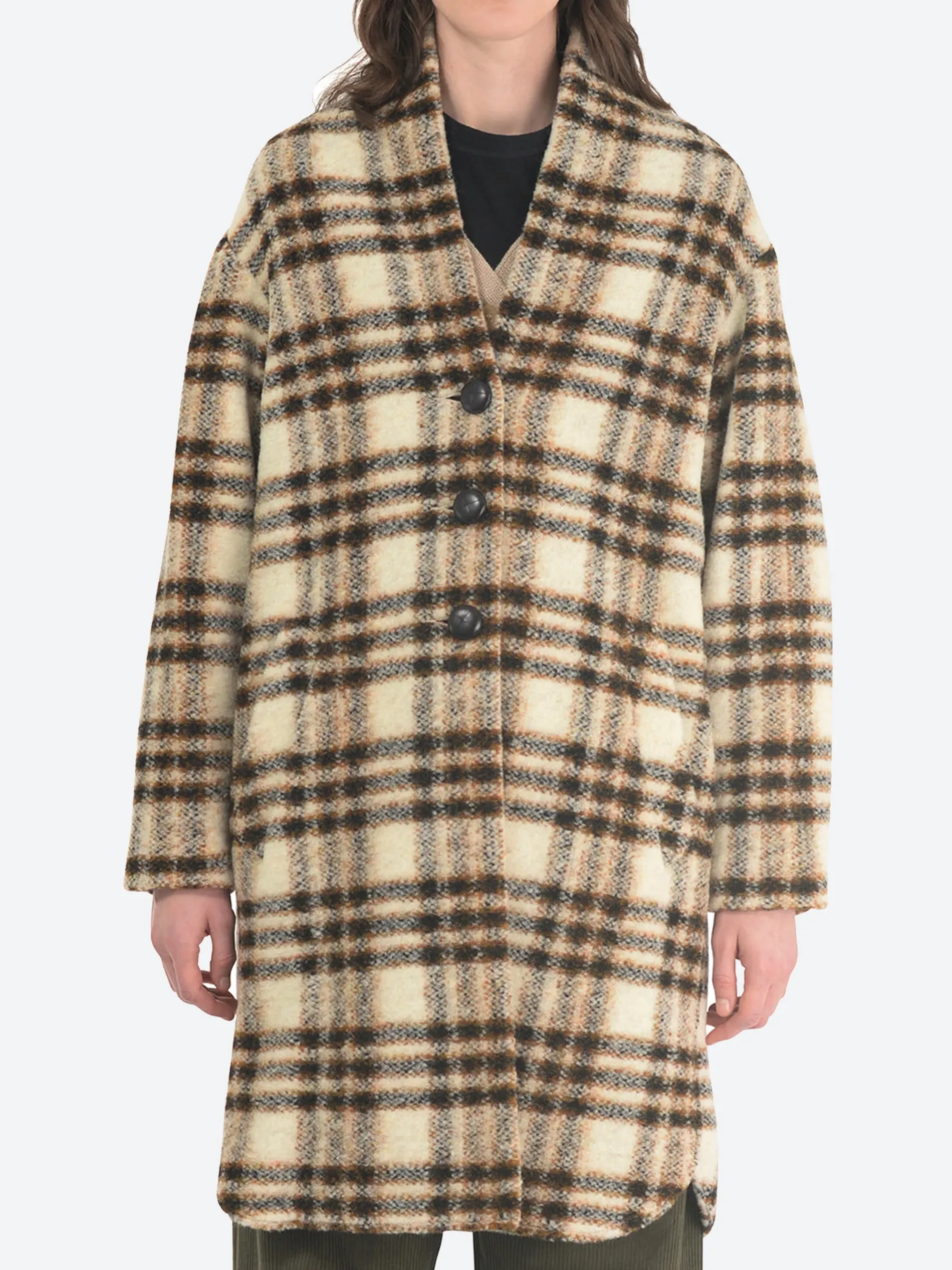 Isabel Marant Étoile Gabriel coat made from a warm wool blend. This sophisticated plaid design “blanket” style coat is shaped for a relaxed silhouette.