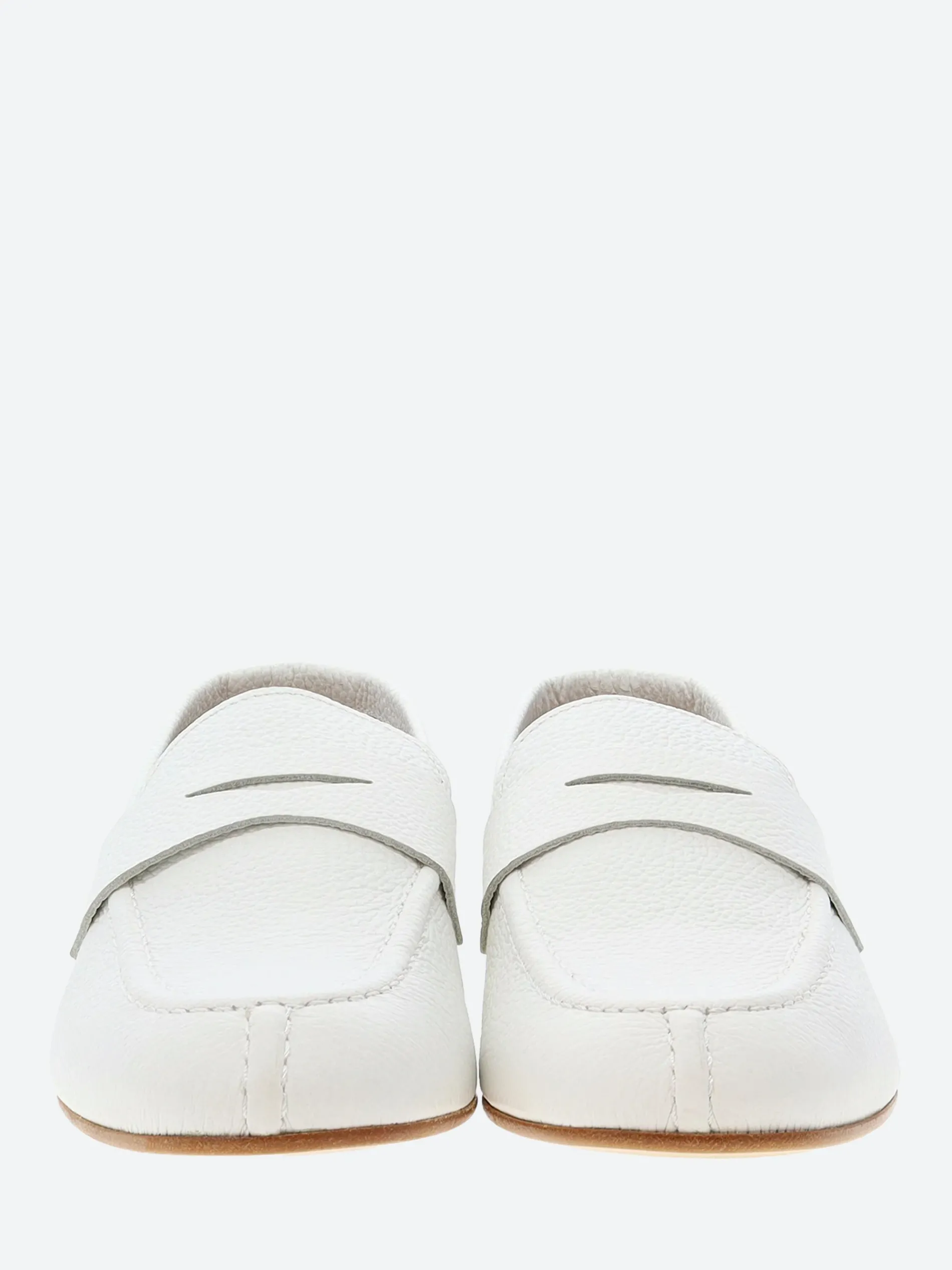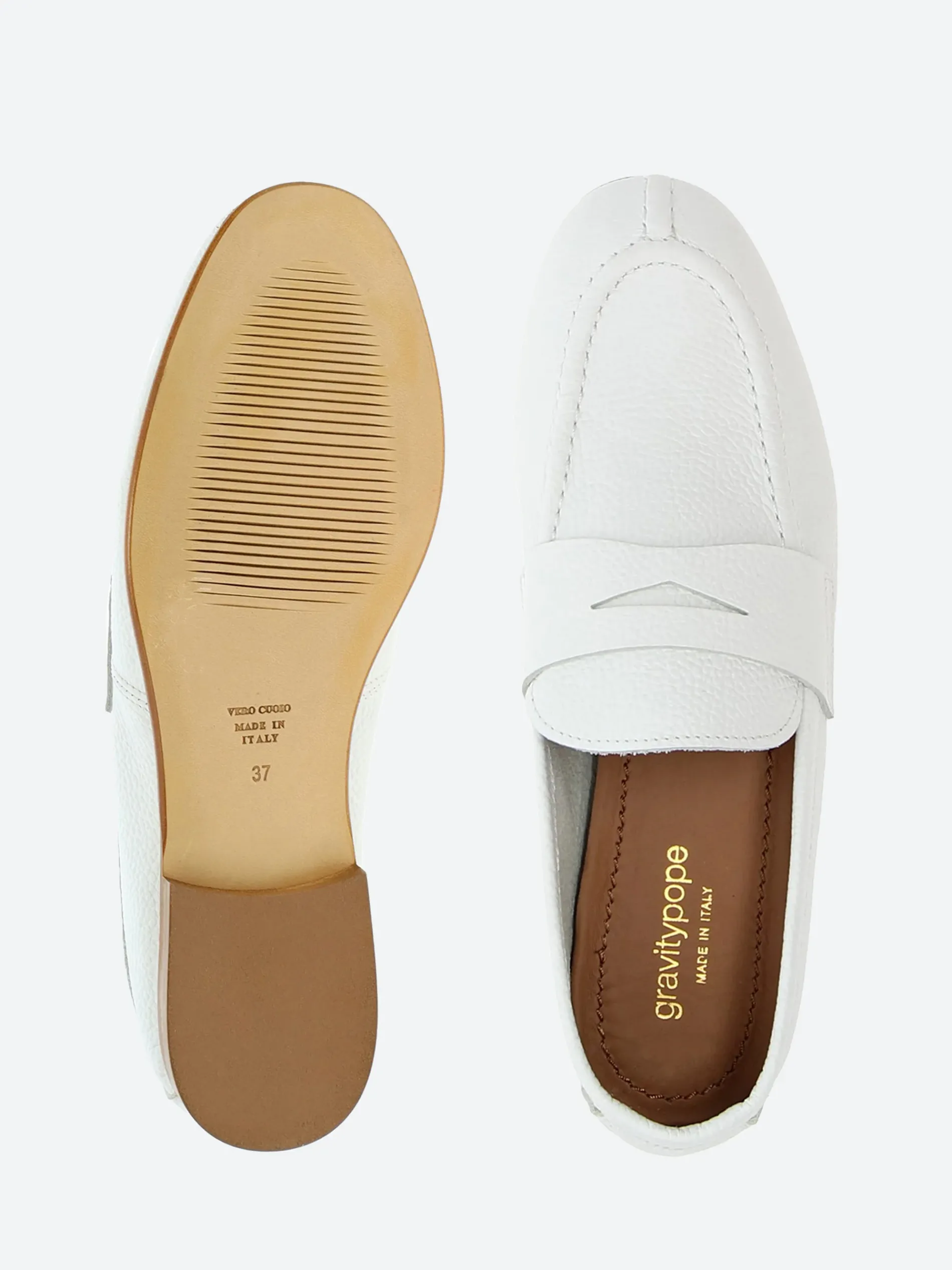 gravitypope Gana, a sleek penny loafer set on a modest flat sole.