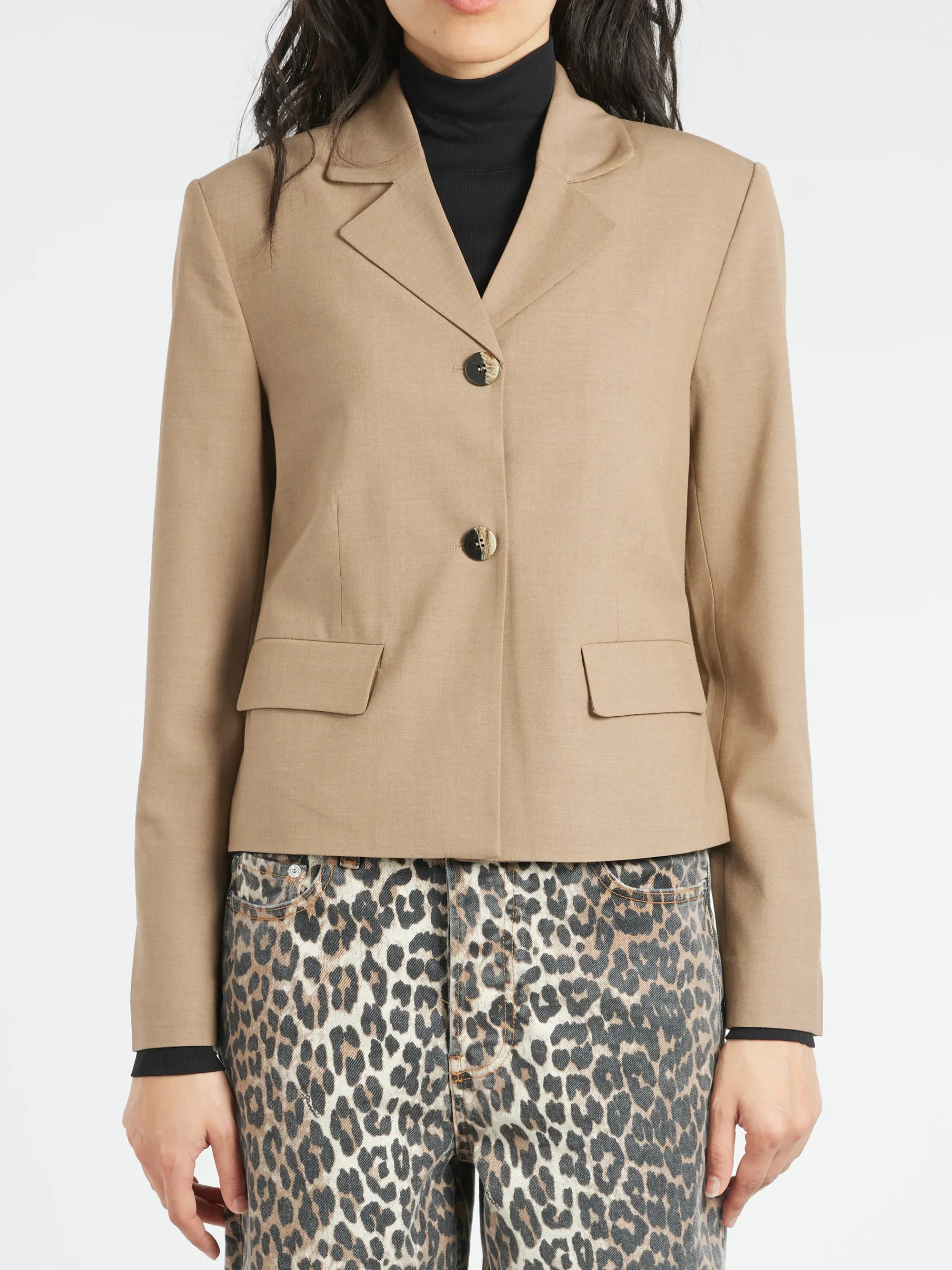 - Single-breasted silhouette