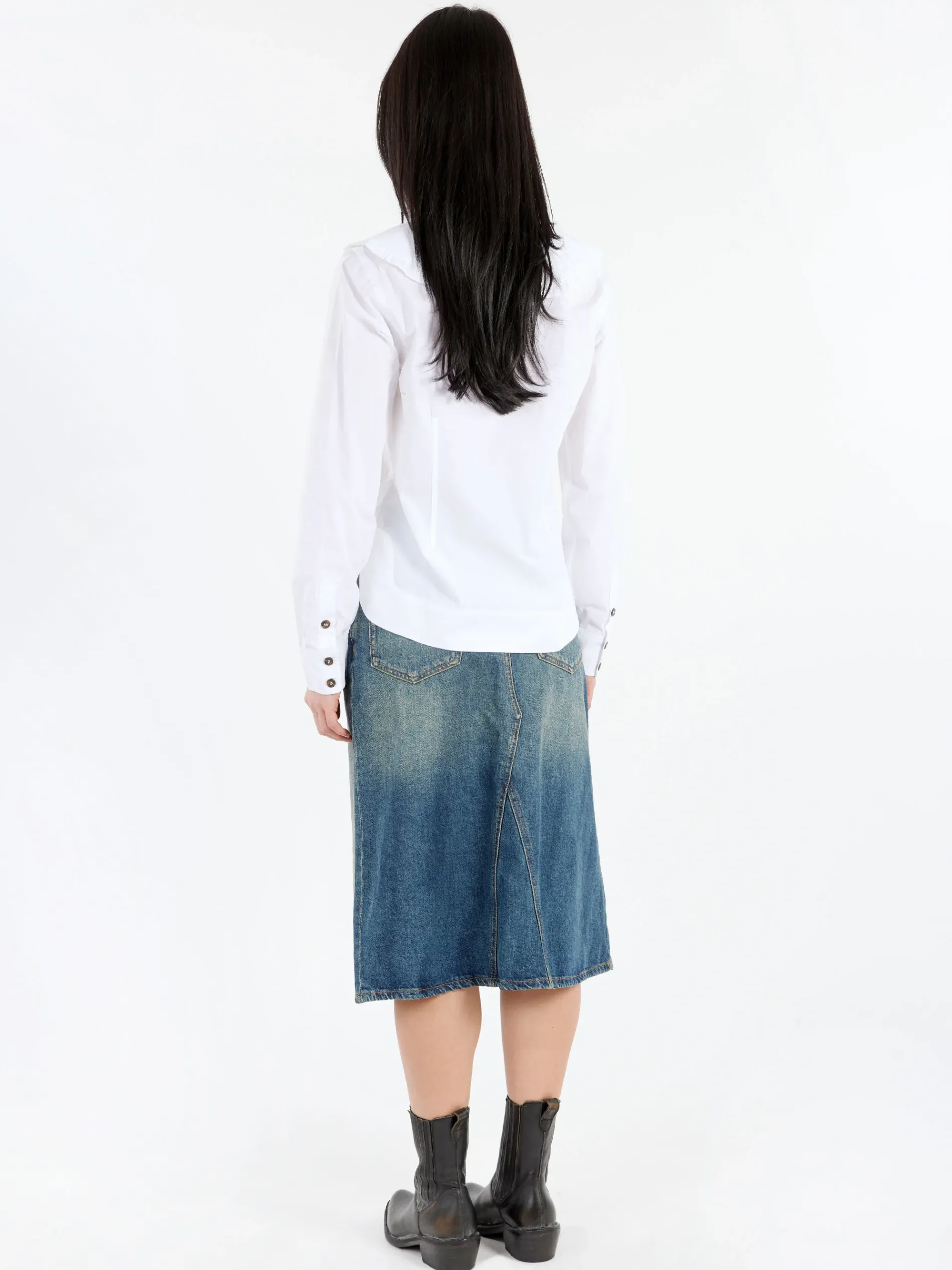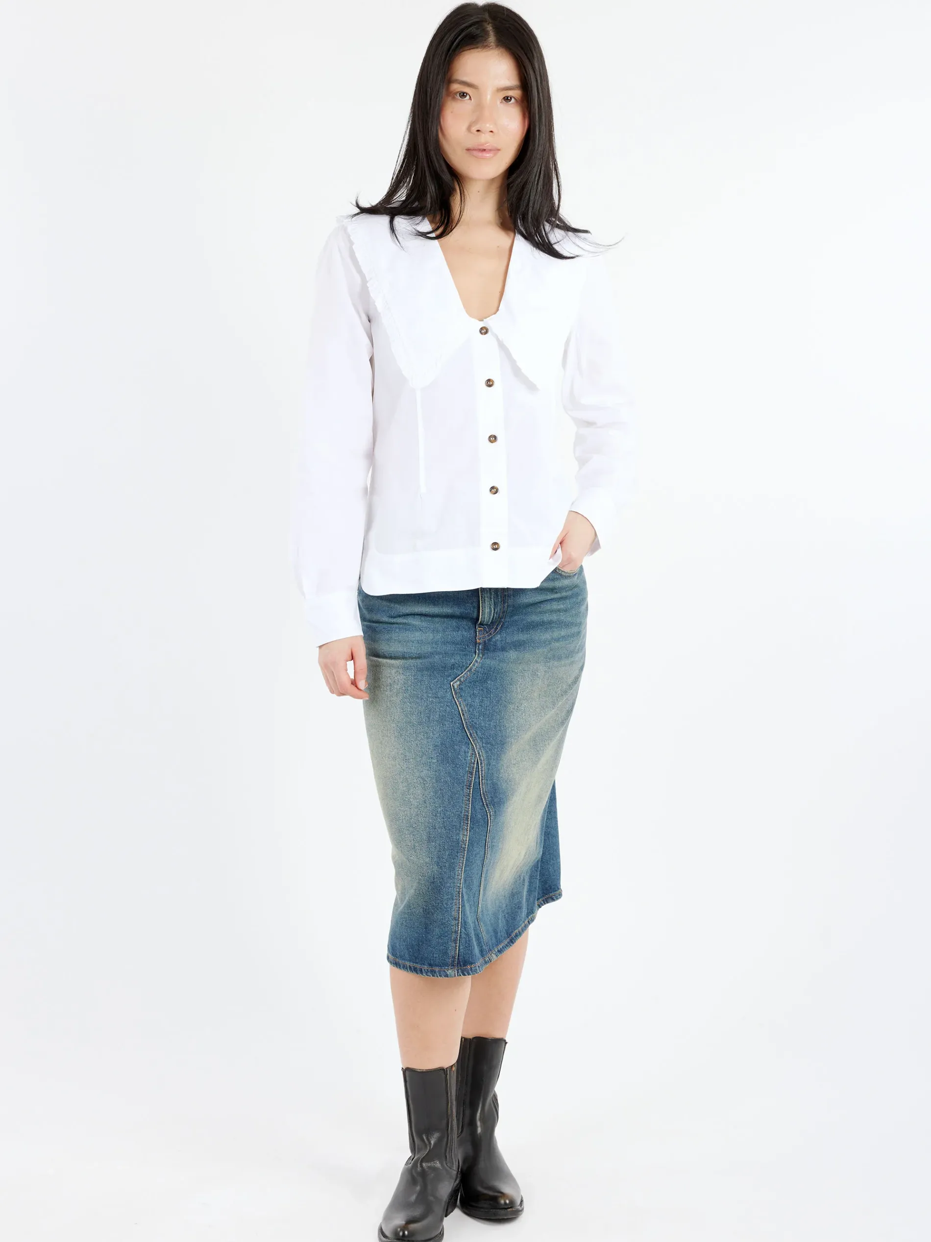 This Cotton Poplin V-neck Frill Collar Shirt is made from certified organic cotton. The shirt is designed for a regular fit.