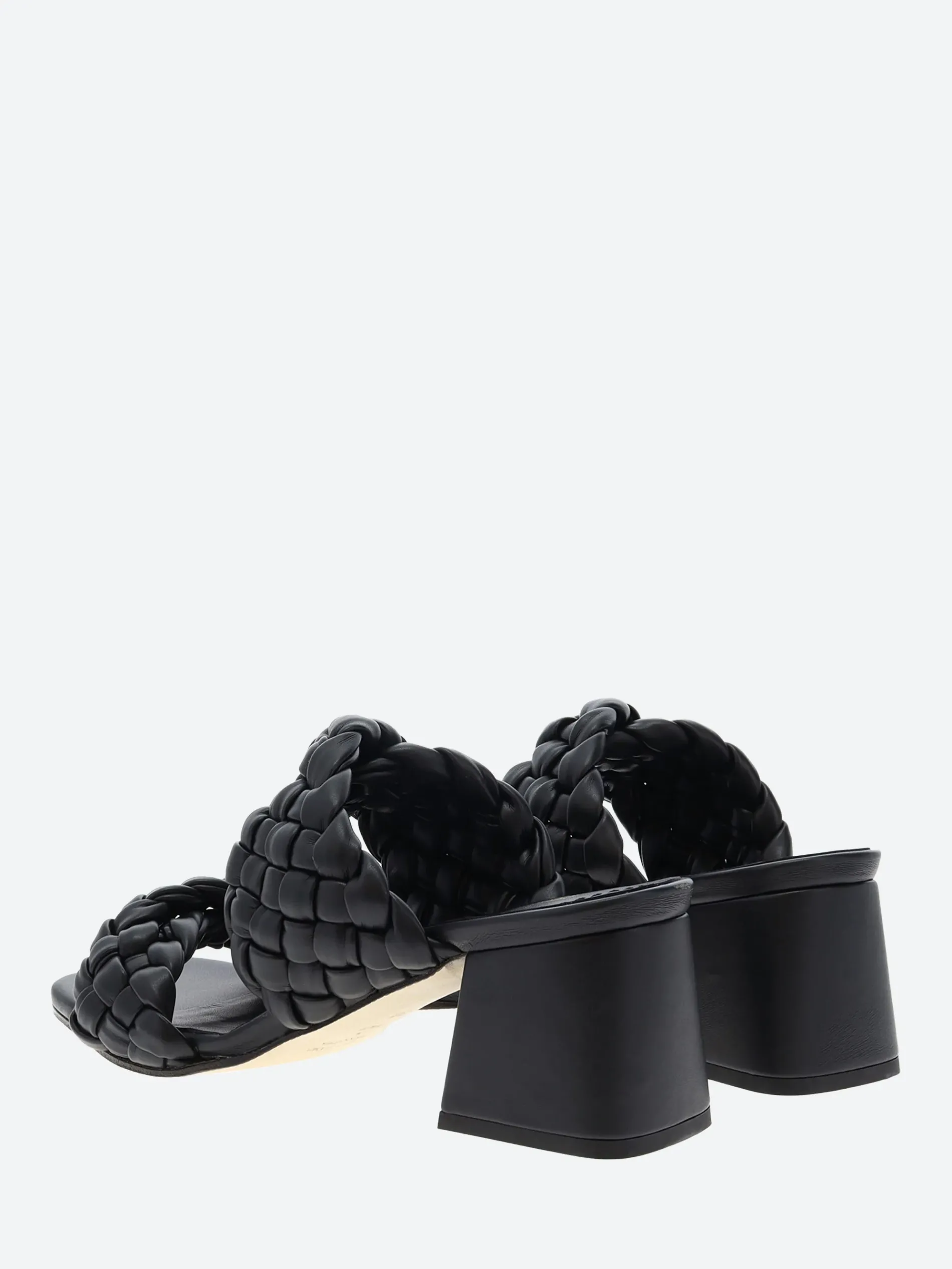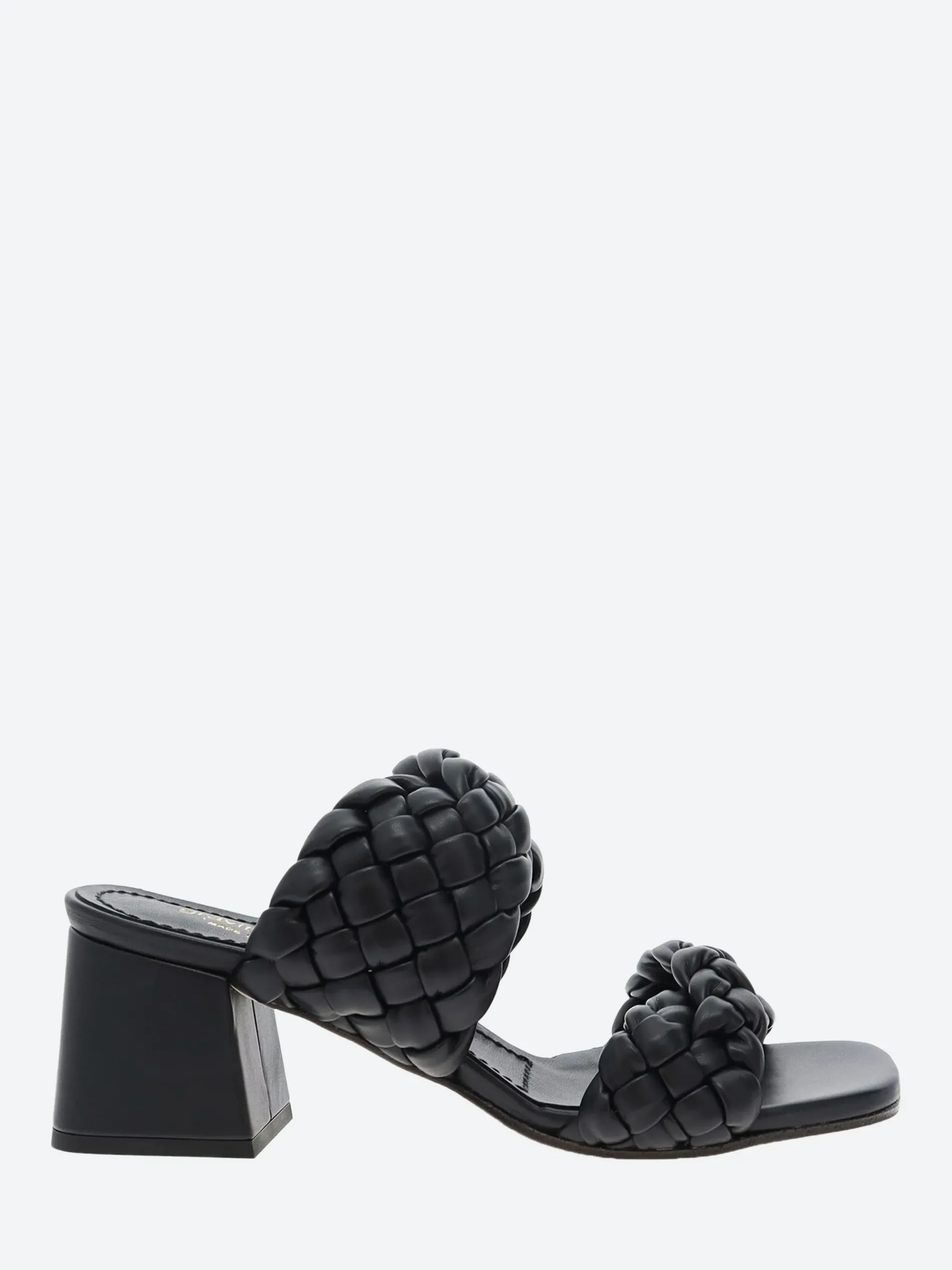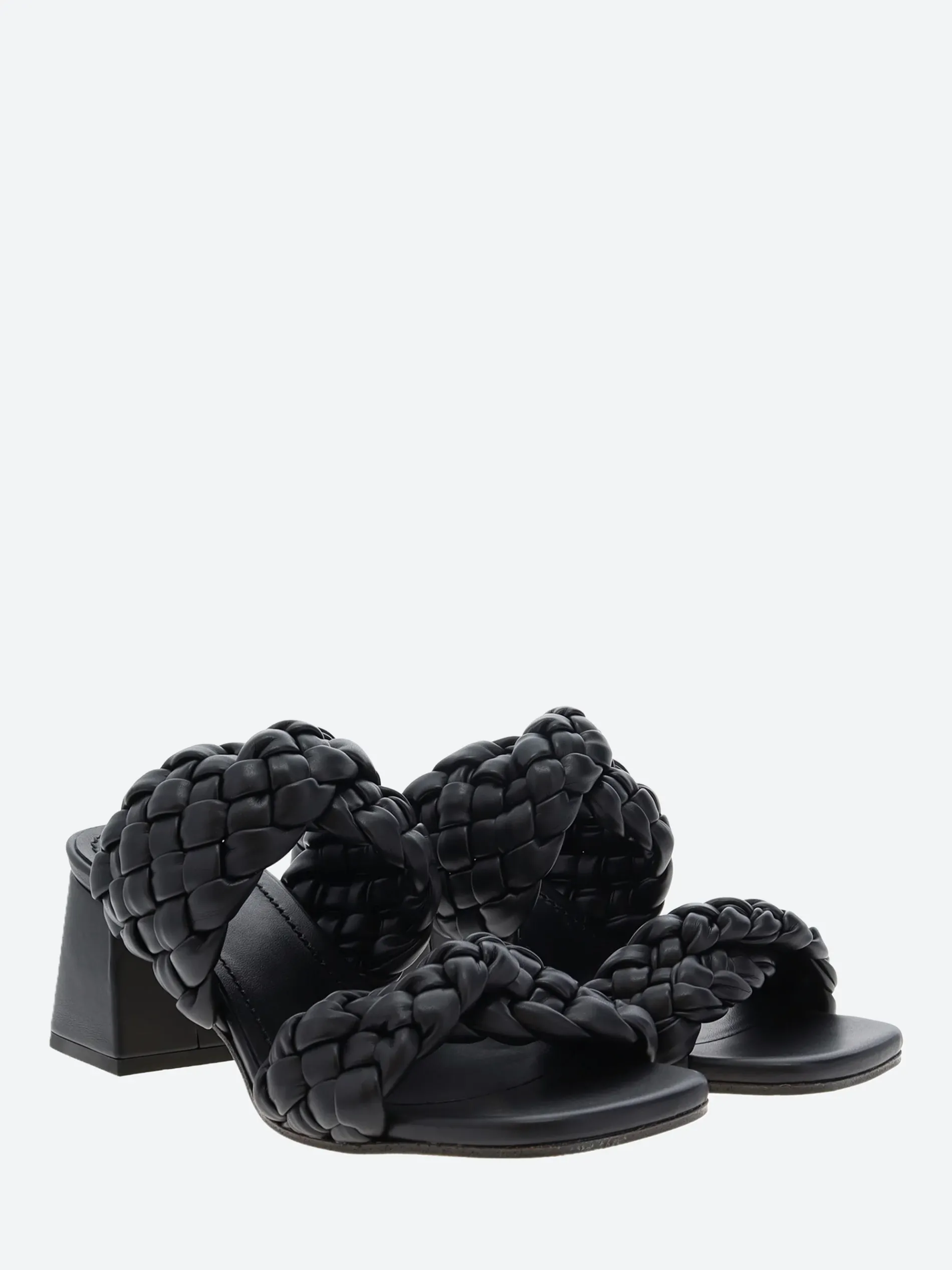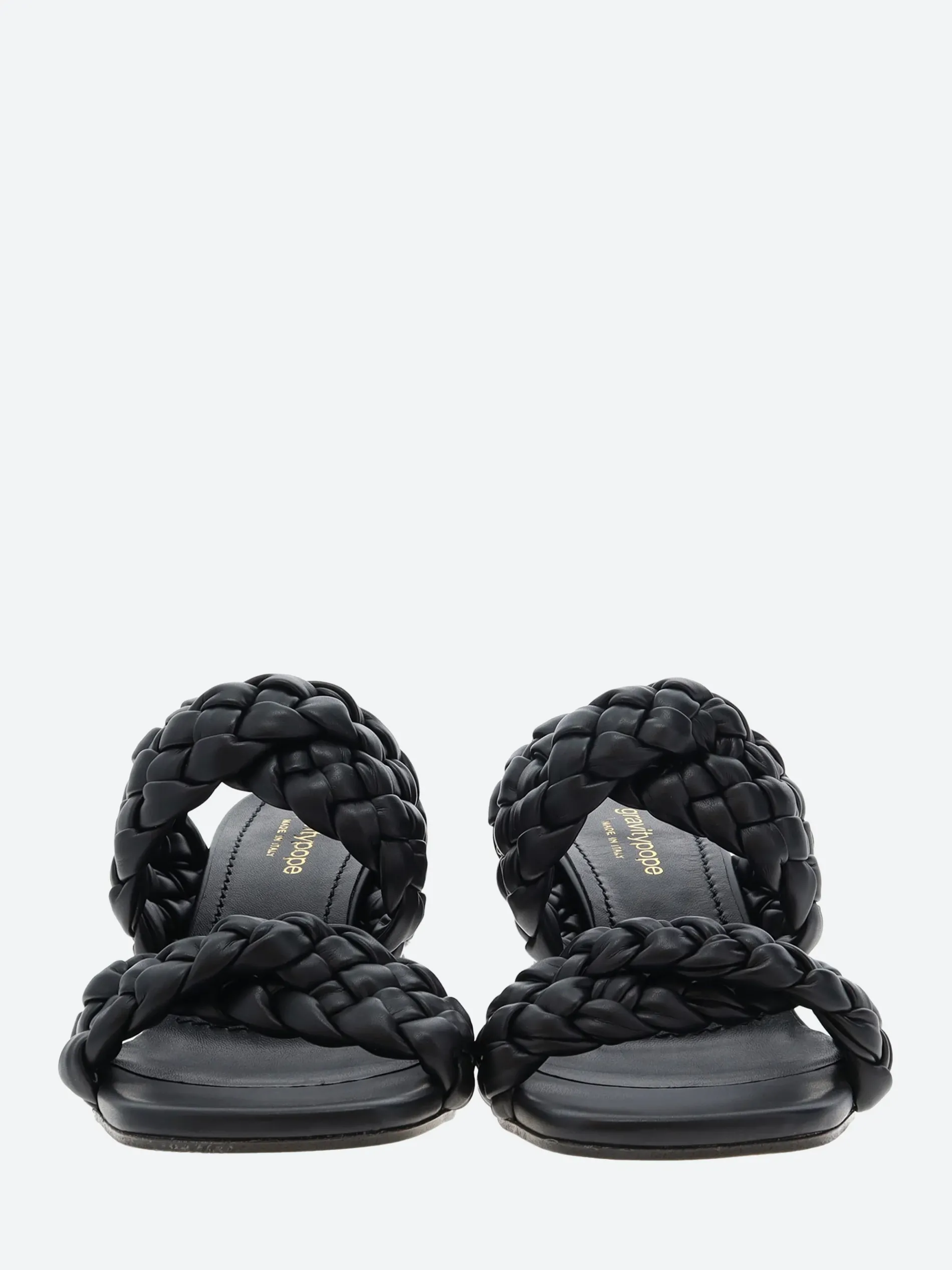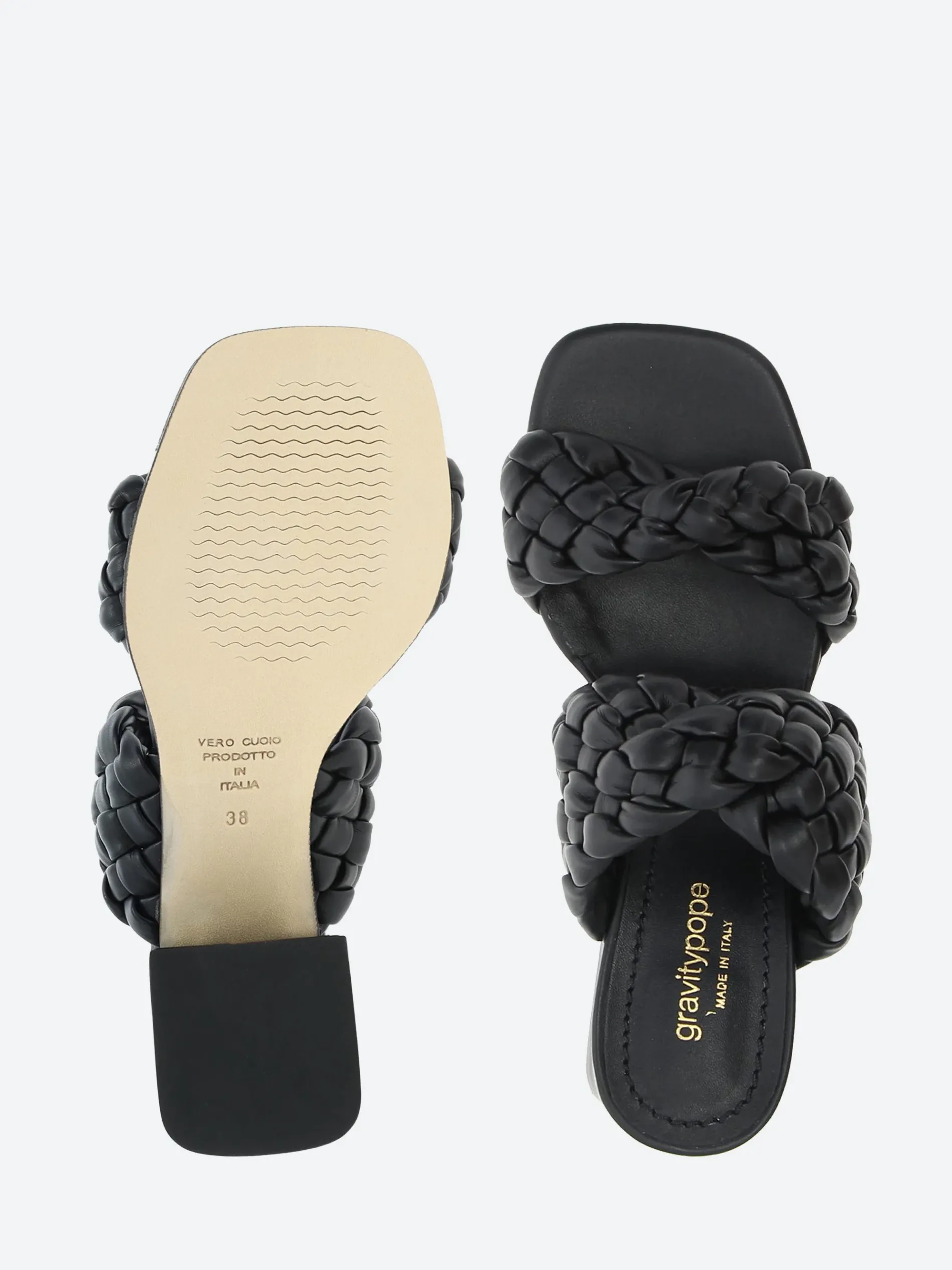 gravitypope Gavi slip-on sandal with woven cross straps, sitting on a chunky block heel.