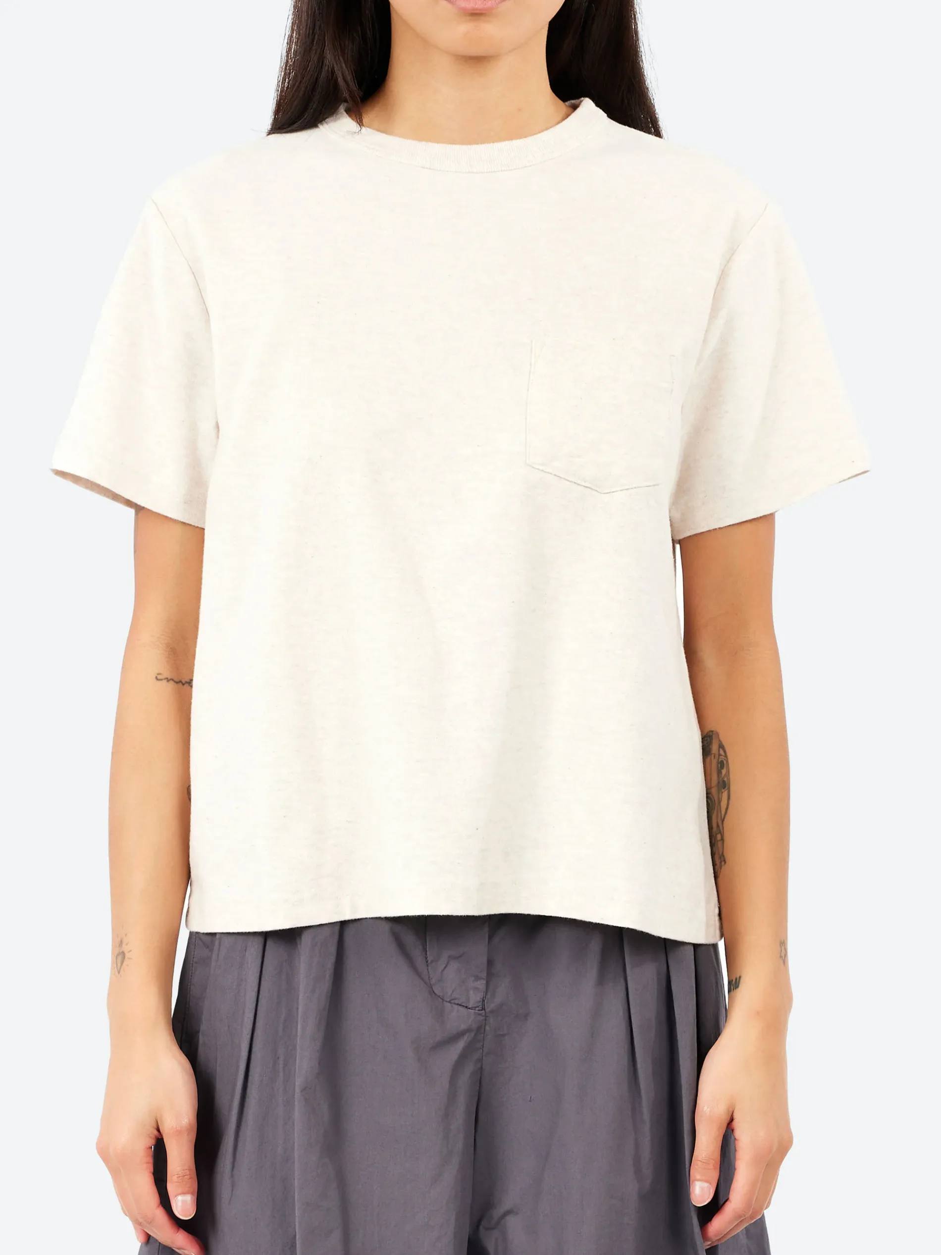 Classic crewneck t-shirt with an applied chest pocket, done the Girls Of Dust way. These were made from a premium cotton mélange.