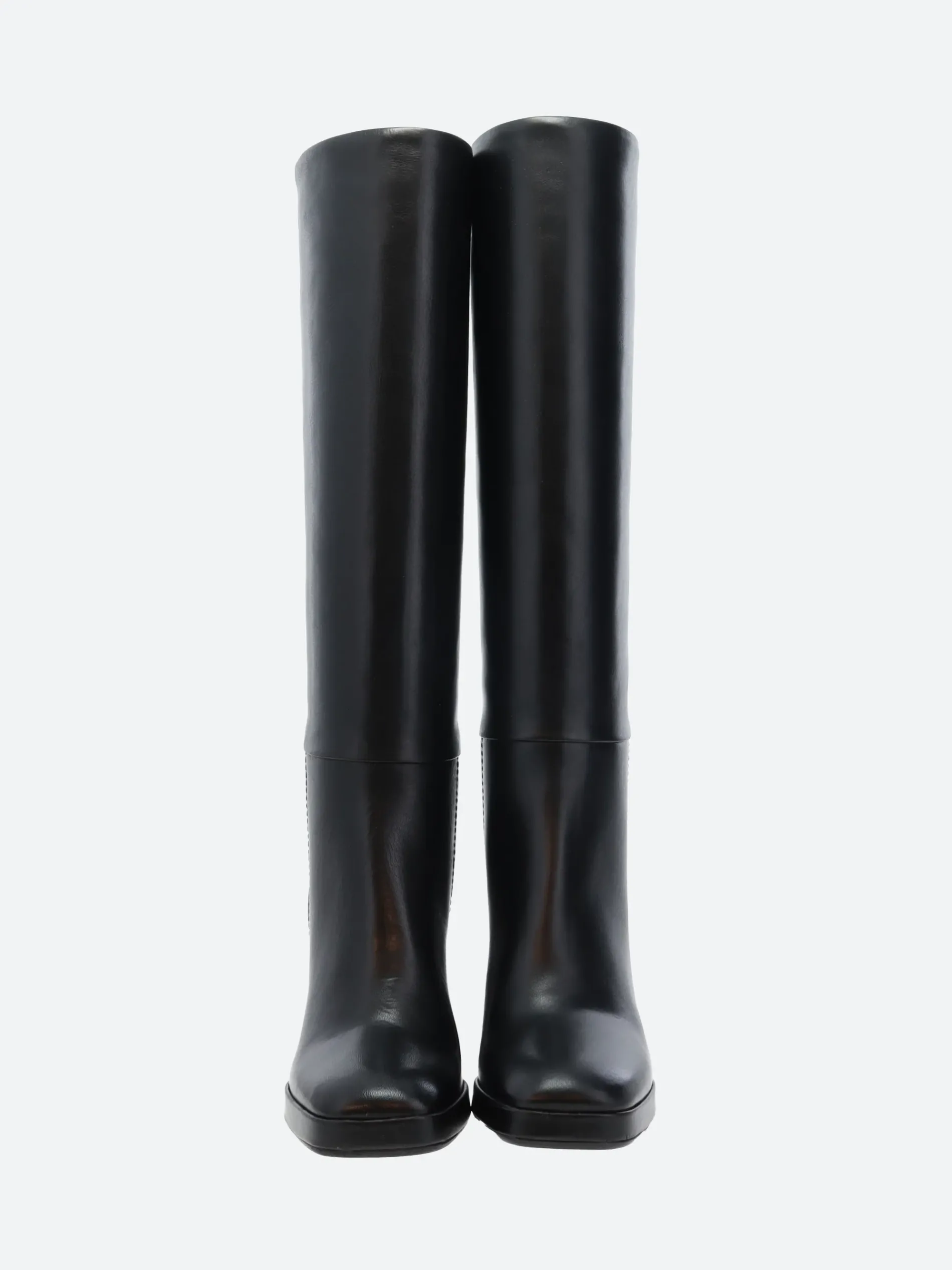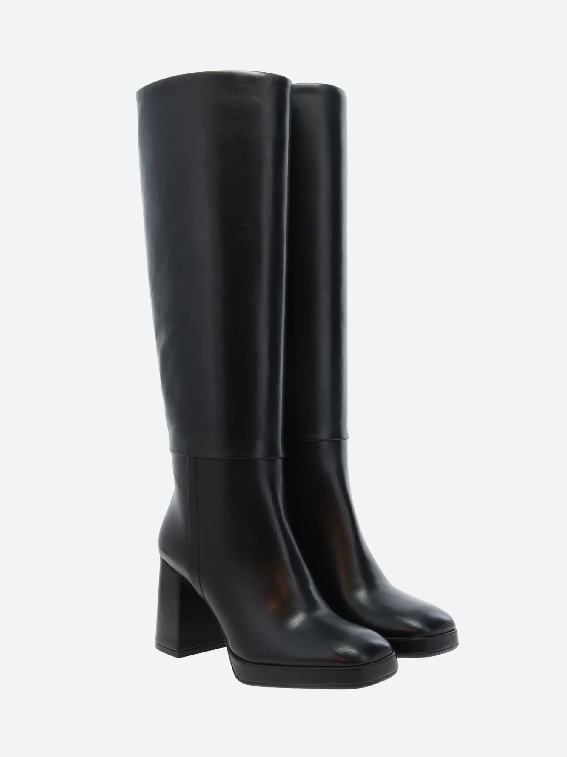gravitypope Gronia knee-high boot with a tapered square toe and block heel for modern appeal.