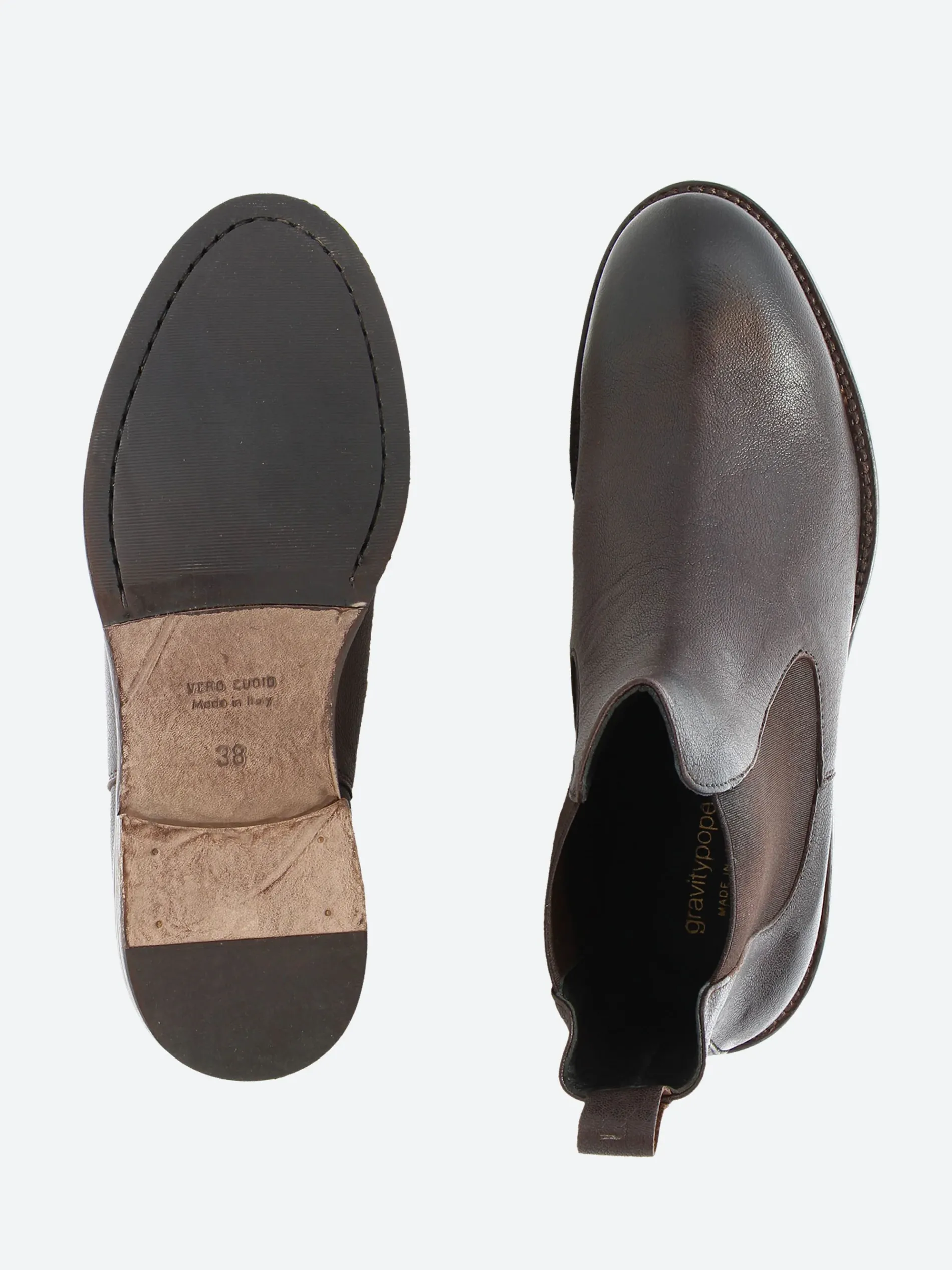 The gravitypope Madge Chelsea boot is meticulously handcrafted in Italy using premium full-grain leather and fully leather-lined for exceptional comfort and long-lasting durability. Featuring a round toe, its minimalist design offers a sophisticated, understated elegance. The half rubber sole not only enhances the comfort but also provides reliable traction, making it perfect for all-day wear, no matter the season. With its timeless craftsmanship and practical design, this boot is the ideal choice for those who seek both style and functionality.