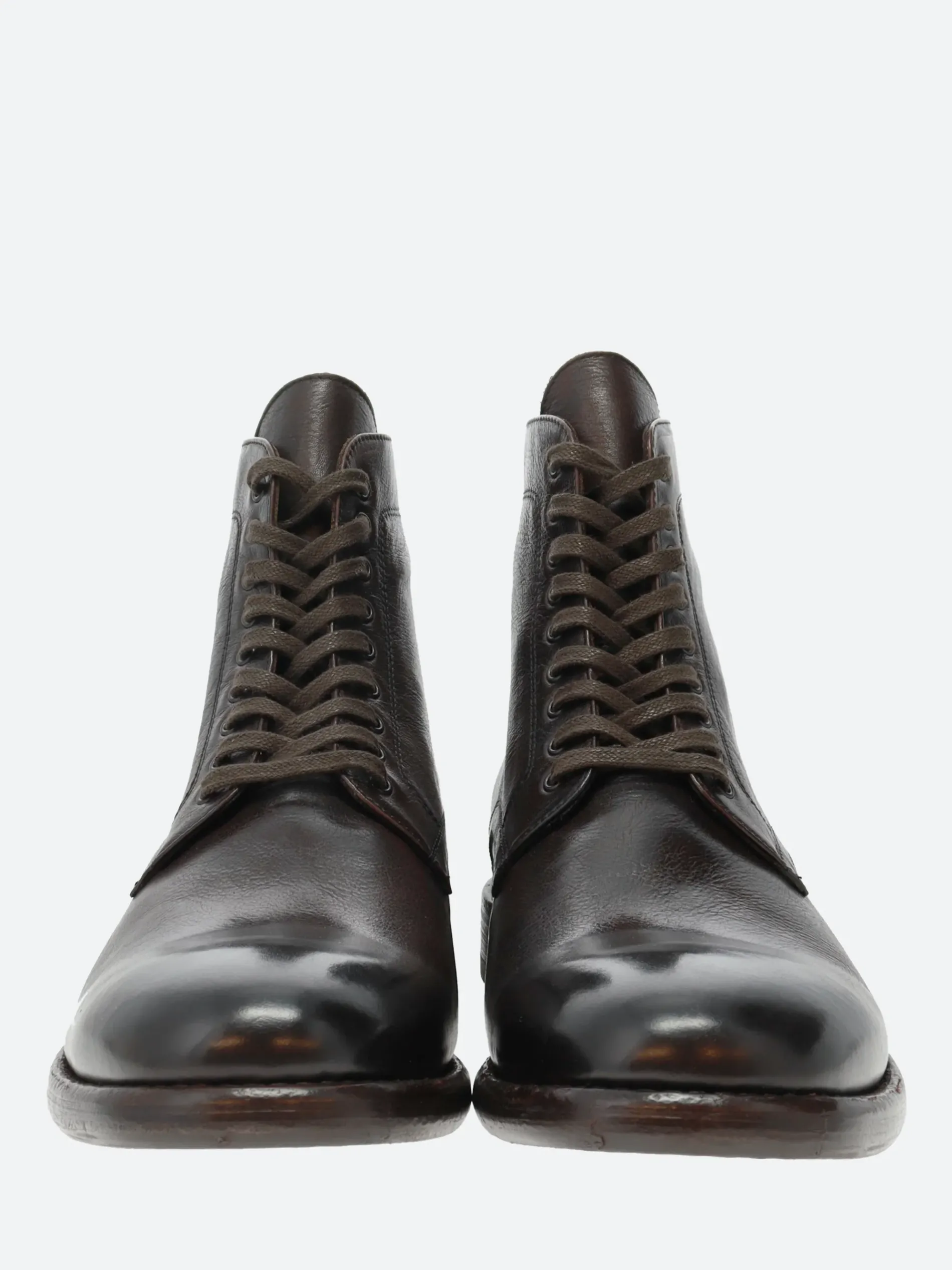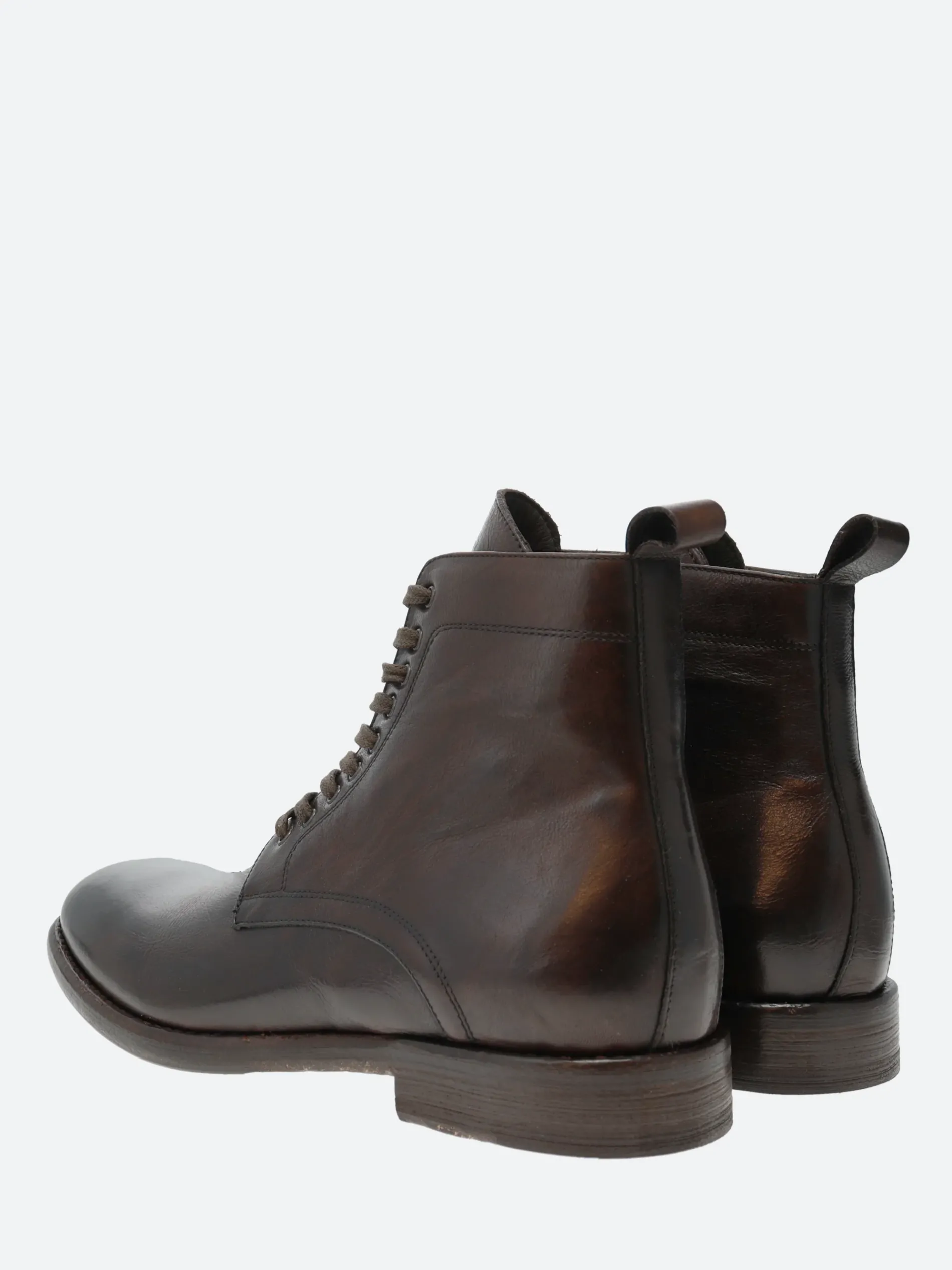 gravitypope Marco lace-up derby boots in polished brown leather. Stitched leather sole with rubber pad. Handcrafted in Italy.