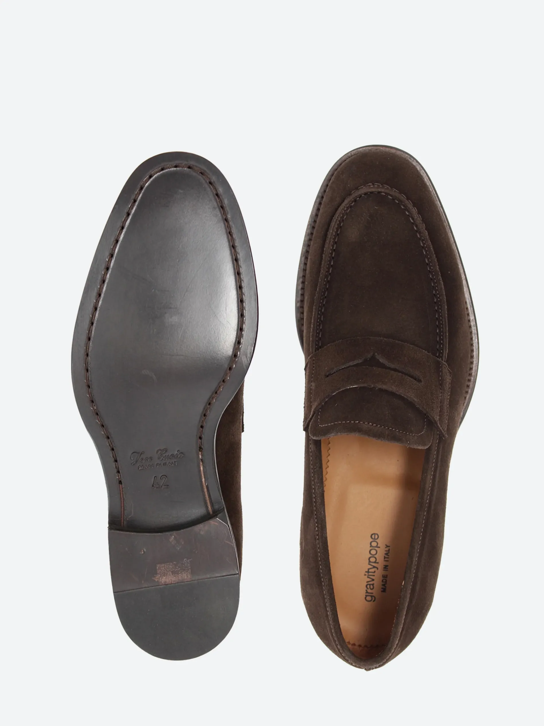 gravitypope Massimo is a classic apron loafer in brown suede with tonal leather sole. Handcrafted in Italy.