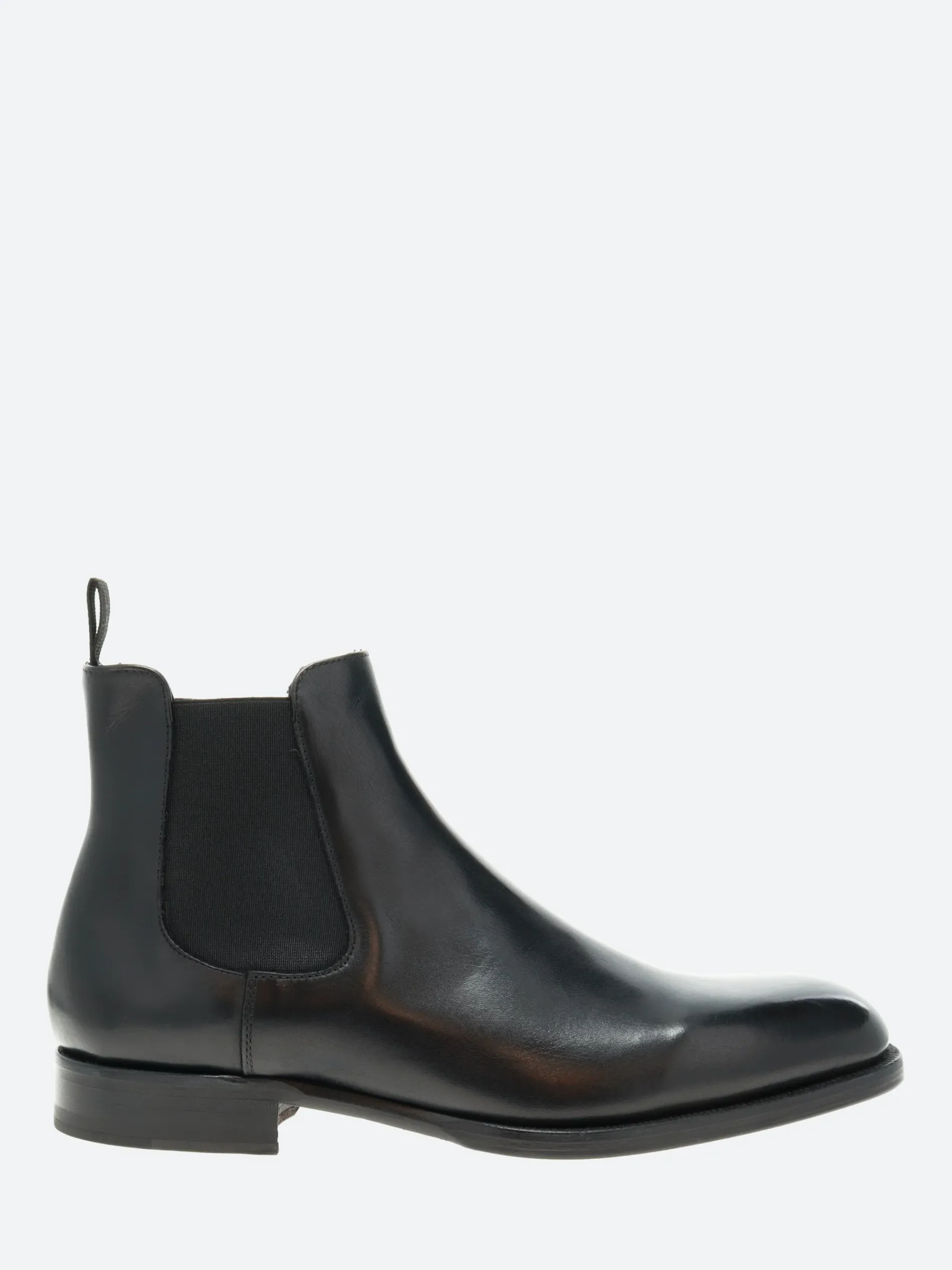 The gravitypope Chelsea boot features a long, slightly square silhouette crafted in Italy from smooth Vitello leather and fully leather-lined for a luxurious feel. The leather sole is enhanced with a rubber toppy on the forefoot and heel, providing added comfort and durability. Minimalist detailing brings maximum versatility to this design, making it ideal for various outfits and occasions. Traditional goring in the shaft ensures an easy fit, combining timeless style with practicality for an essential addition to any wardrobe.
