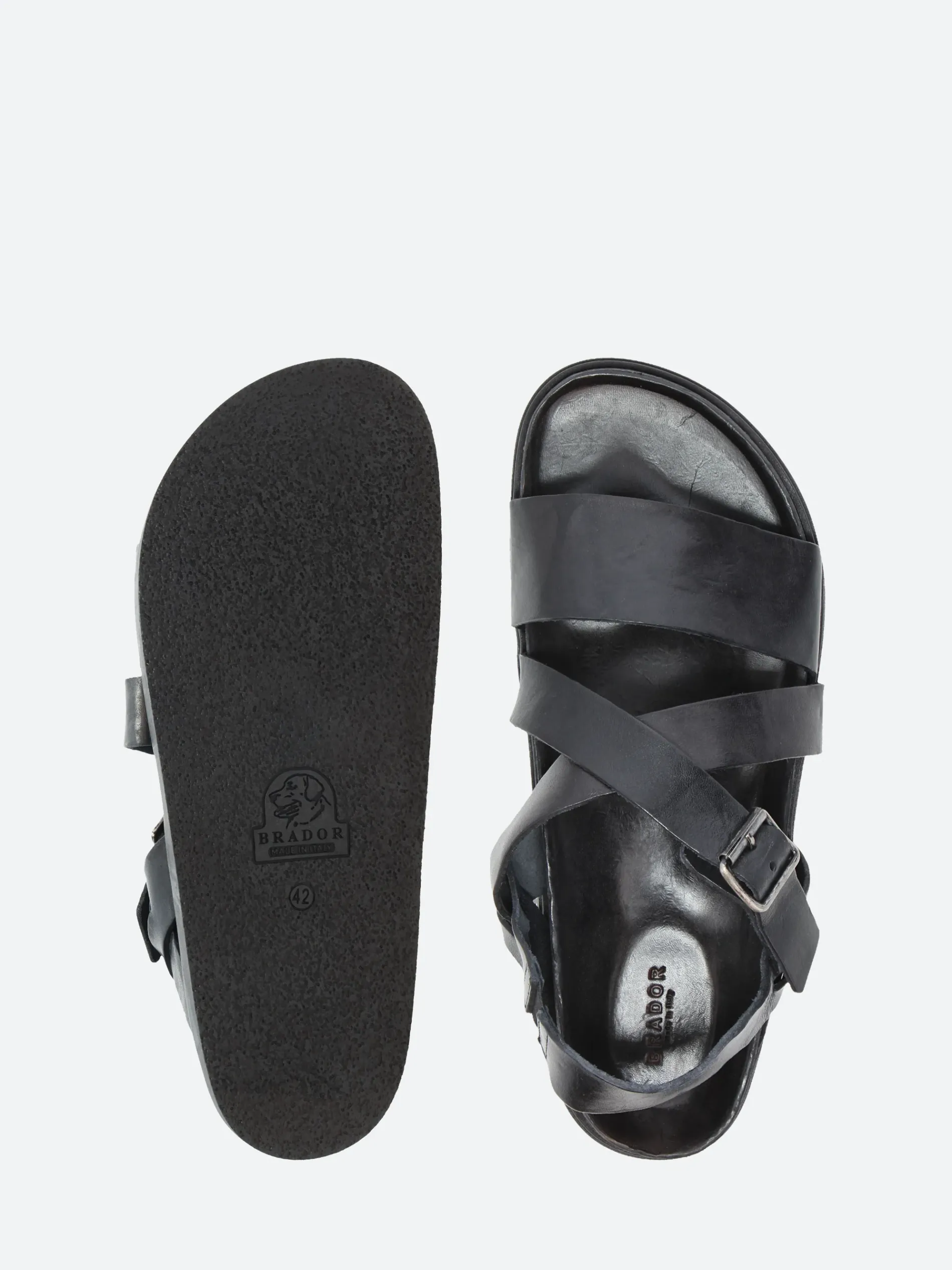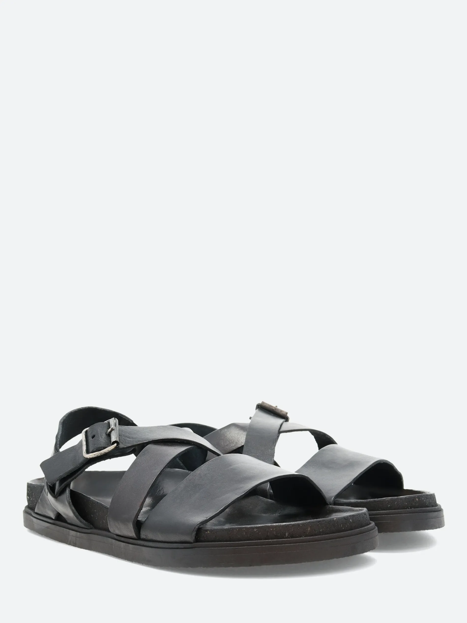 gravitypope Olegar with crisscrossing vamp straps in smooth leather. A contoured footbed provides support and flexibility.