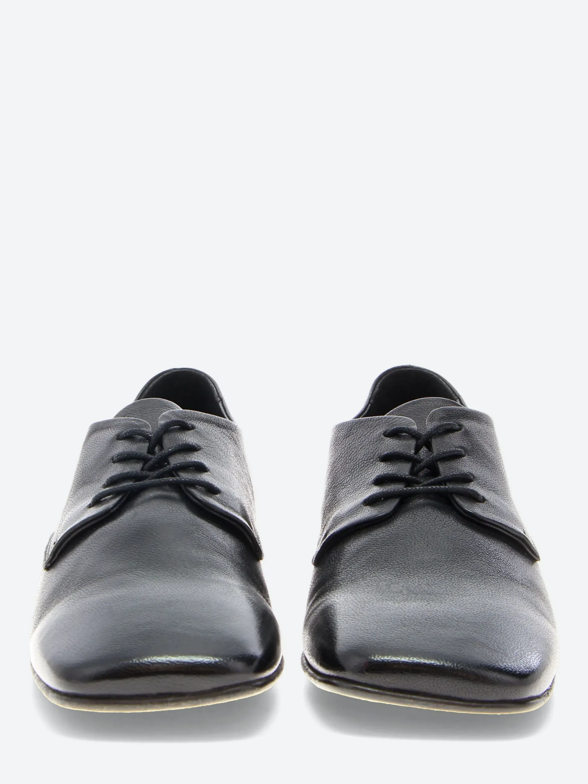 The gravitypope Rainor shoes are handmade in Italy from smooth yet shiny Nappa leather, offering a sleek and polished look. Inspired by dance shoes, they feature cotton laces and a contemporary square toe, blending comfort with style. Fully lined in smooth leather for added luxury, these shoes also feature a flat heel, providing all-day comfort and versatility.